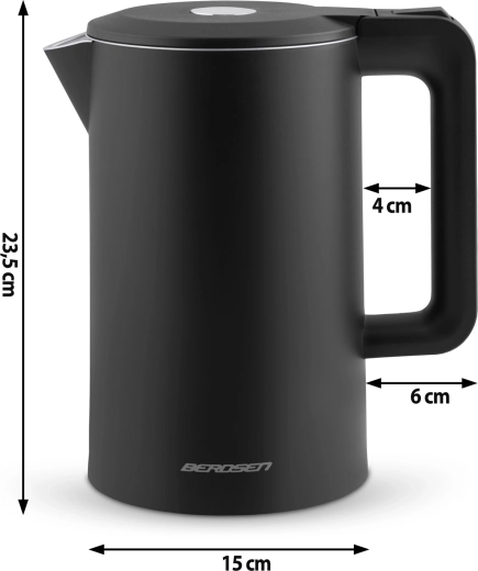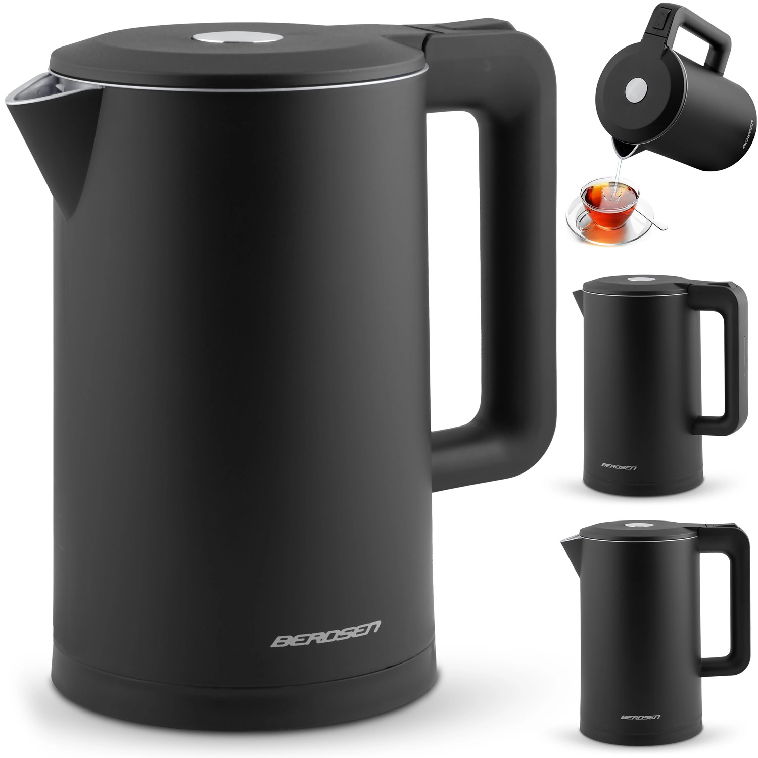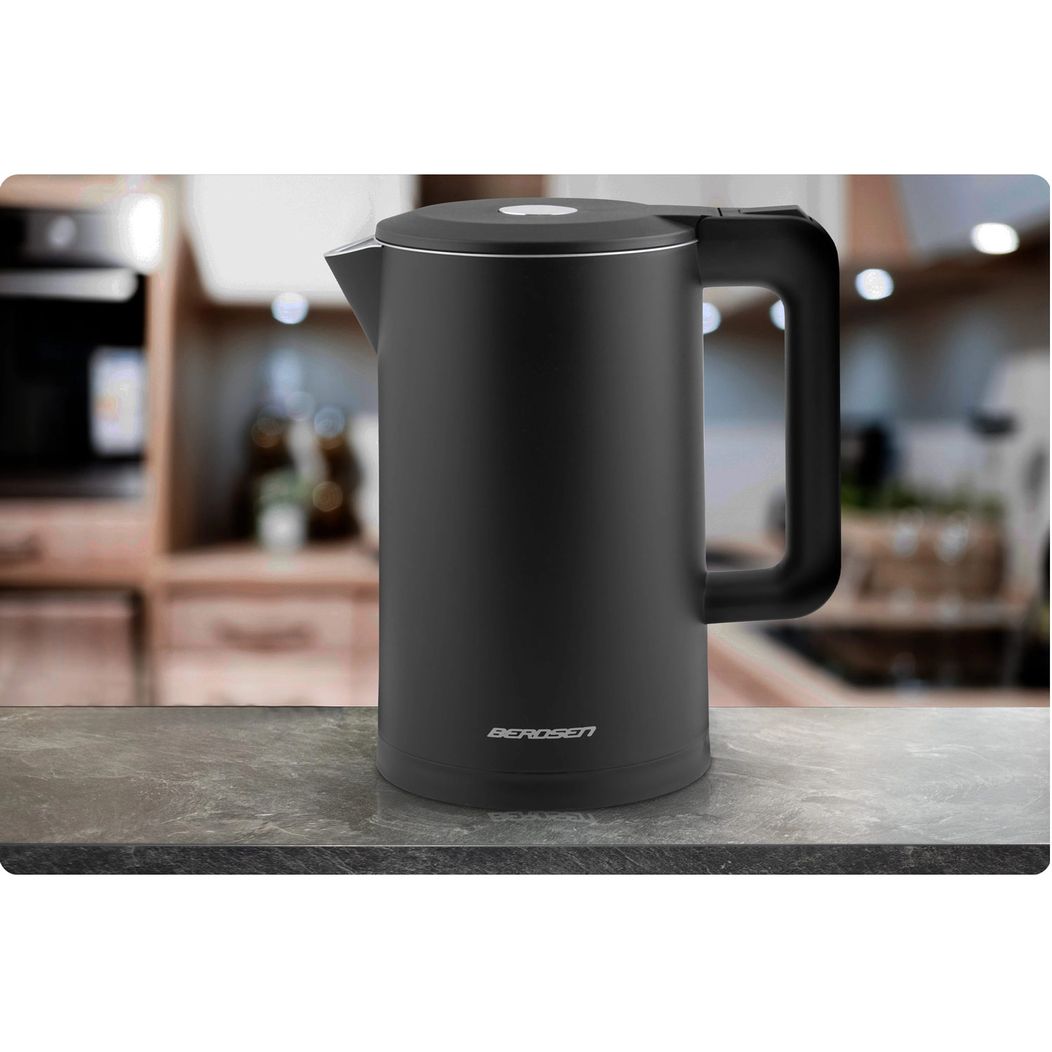 Stylowy czajnik elektryczny BERDSEN o pojemności 1,7 l łączy stal nierdzewną SUS304 dla czystego smaku wody oraz izolowaną konstrukcję CoolTouch™ dla bezpiecznego użytkowania bez ryzyka oparzeń. Oferuje moc 1850–2200 W dla szybkiego gotowania, obrotową podstawę 360°, podświetlany pasek LED oraz przemyślane detale, takie jak schowek na kabel i antypoślizgowe nóżki.