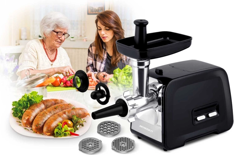 Wydajna elektryczna maszynka do mięsa Berdsen ułatwi codzienne gotowanie. Oferuje mocny silnik 450 W (szczytowo 1200 W), bieg wsteczny (reverse) przeciw zacinaniu, metalowy ślimak i wytrzymałe przekładnie. Dzięki 3 stalowym sitkom (3/5/7 mm) przygotujesz mielenie drobne i grube, domowe kiełbasy oraz kebbe. Łatwe czyszczenie, bezpieczne materiały LFGB i BPA free oraz kompaktowa obudowa z schowkiem na akcesoria zapewniają wygodne użytkowanie i przechowywanie.
