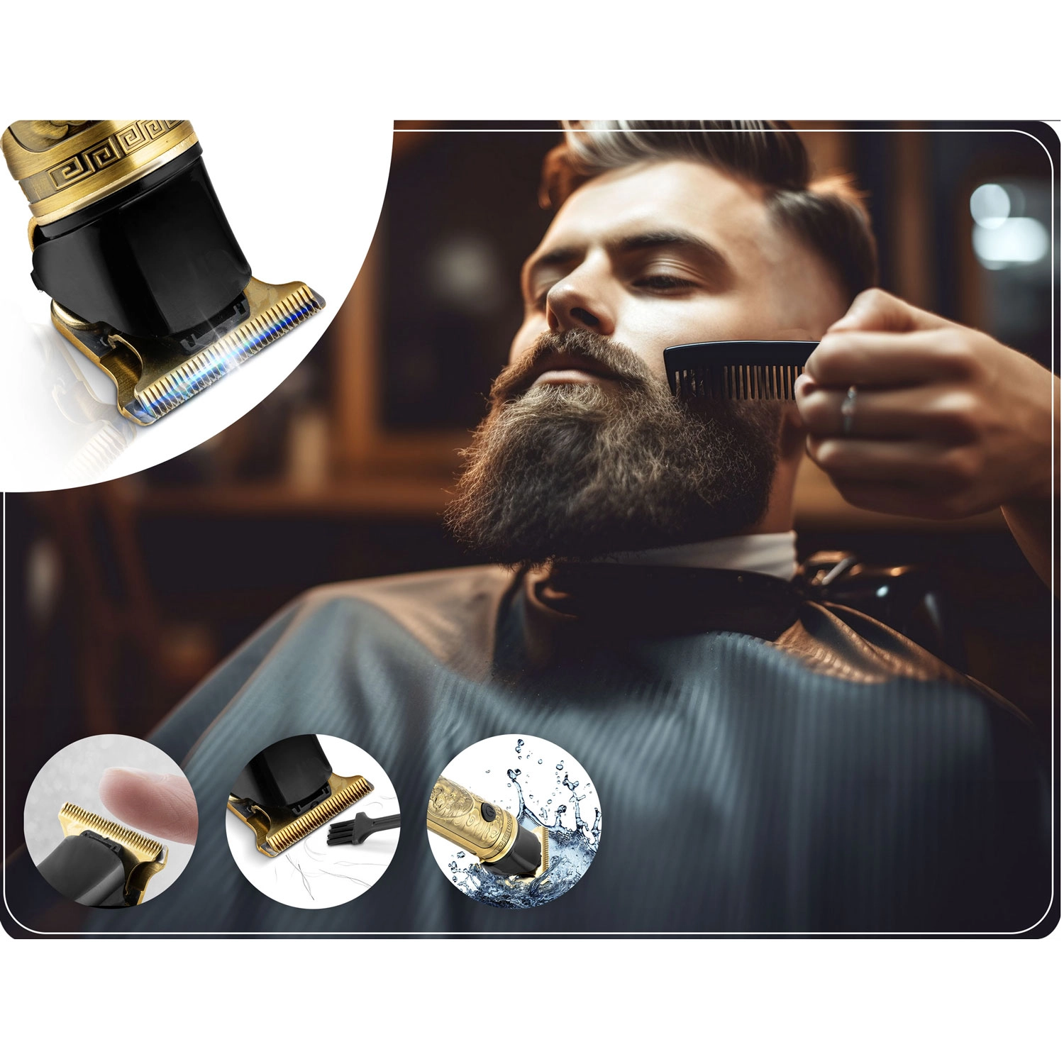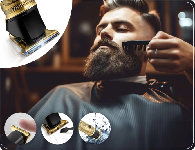 Uzyskaj profesjonalną precyzję w zaciszu domu. Ten złoty trymer BERDSEN Barber Master oferuje silny silnik z 3 prędkościami (8500/7500/6000 RPM), ostre stalowe ostrza typu T do precyzyjnych konturów, ekran LCD z wskaźnikiem baterii i czasu, 6 nasadek 1,5–9 mm oraz baterię Li‑Ion 1800 mAh zapewniającą do 2,5 godziny pracy. Ładowanie przez USB‑C, a ergonomiczne metalowe korpus z ryflowanym wzorem świetnie leży w dłoni.
