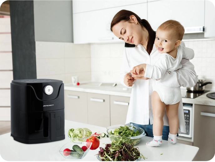 BERDSEN BD-654 to wszechstronna frytkownica beztłuszczowa, która smaży, piecze, grilluje i suszy – wszystko w jednym kompaktowym urządzeniu. Ciesz się złocistymi chrupiącymi rezultatami na zewnątrz i soczystym wnętrzem przy minimalnej ilości oleju. Idealna na szybkie kolacje, wieczory filmowe i zdrowe obiady bez zbędnych kalorii.