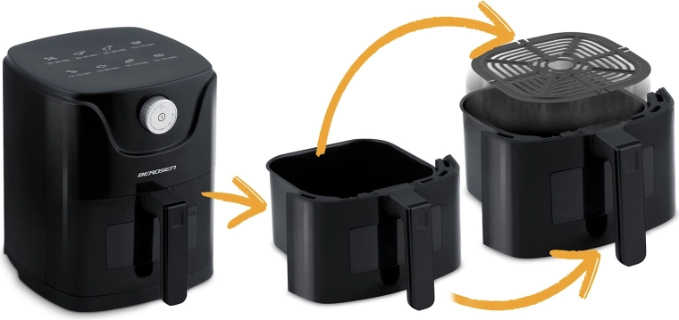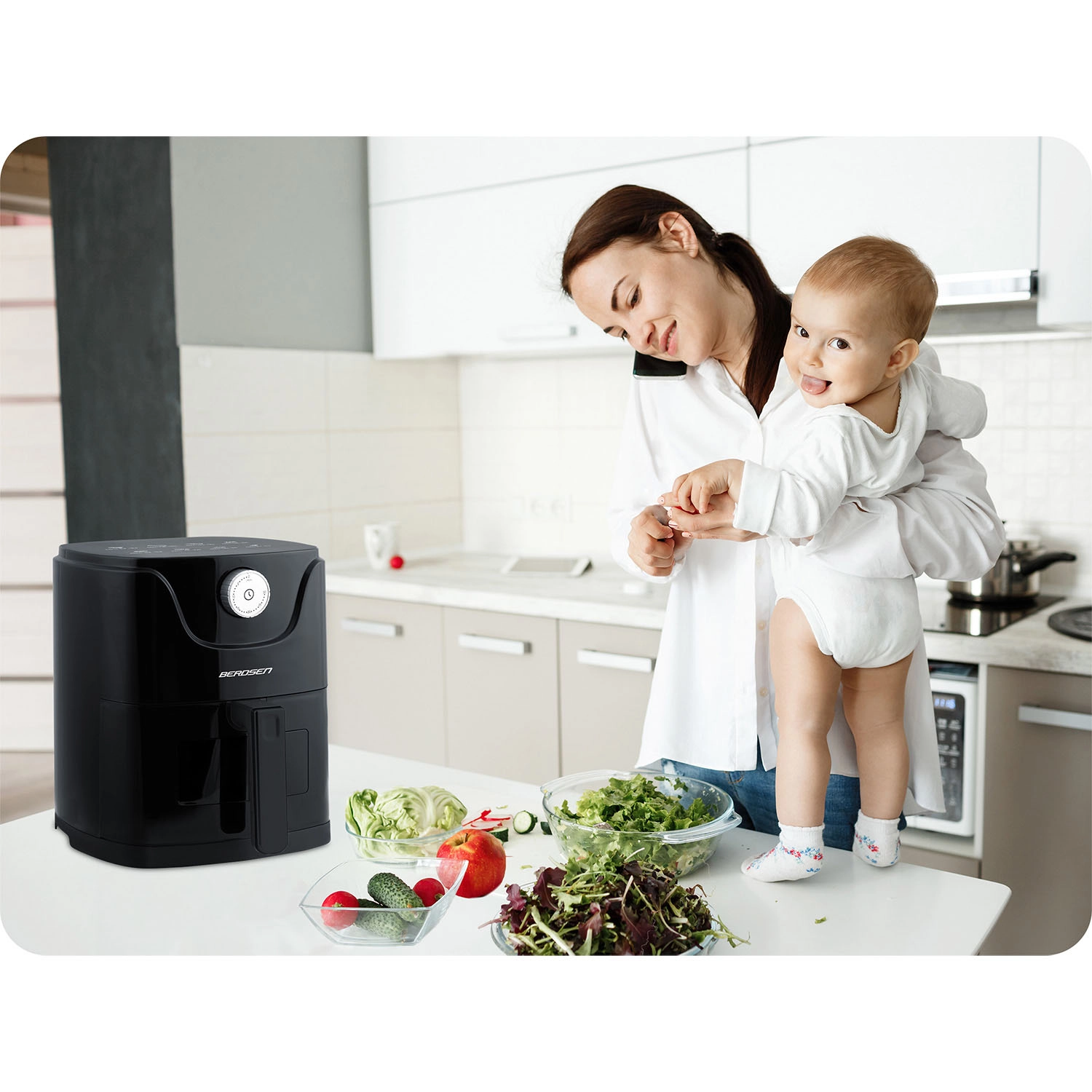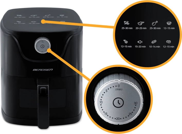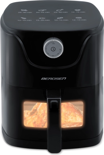 Odkryj szybkie i zdrowsze gotowanie z frytkownicą beztłuszczową BERDSEN o mocy 1000 W i kompaktowej pojemności 2,5 l. Dzięki cyrkulacji gorącego powietrza przygotujesz chrupiące frytki, soczystego kurczaka czy warzywa z nawet o 90% mniej tłuszczu – bez zapachu i bałaganu. Urządzenie oferuje 8 automatycznych programów, kosz z okienkiem i oświetleniem LED do kontroli bez otwierania oraz łatwą obsługę za pomocą pokrętła.