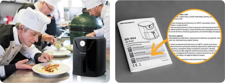 - Smażenie gorącym powietrzem, pieczenie, grillowanie, suszenie, podgrzewanie