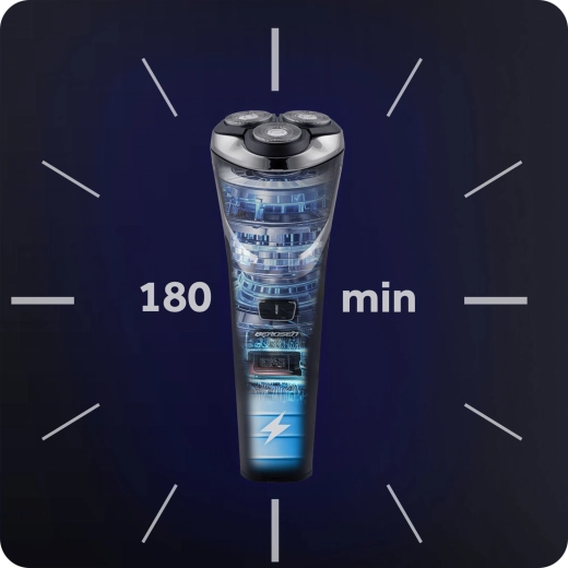 Codziennie ciesz się gładkim i komfortowym goleniem. Obrotowe głowice golące z wysokiej jakości stali dopasowują się do konturów twarzy i zapewniają precyzyjne golenie bez szarpania. Zintegrowany wyświetlacz LCD czytelnie pokazuje poziom baterii oraz prędkość, dzięki czemu masz pełną kontrolę nad goleniem.