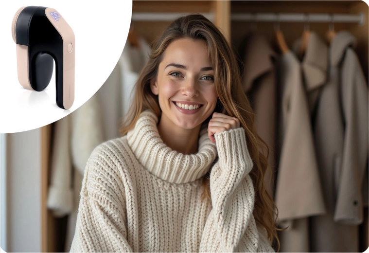 Ergonomiczny kształt zapewnia wygodny chwyt, duży pojemnik na zanieczyszczenia ułatwia czyszczenie, a osłona ochronna z profilowaną siateczką zabezpiecza tkaniny przed zaciąganiem. Dzięki akumulatorowi 2000 mAh urządzenie działa około do 3 godzin i ładuje się nowoczesnym przewodem USB‑C – idealne do domowej pielęgnacji garderoby i w podróży.