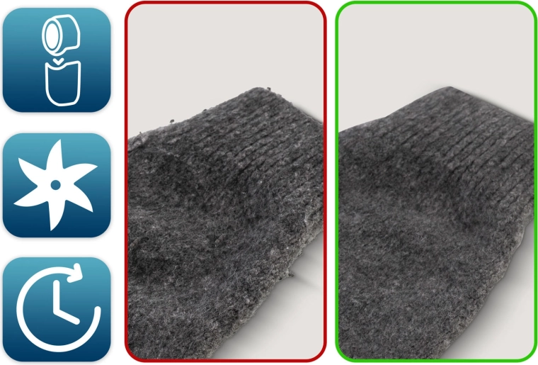 Dzięki 3 trybom dopasujesz intensywność do konkretnej tkaniny: od delikatnych bluzek i T-shirtów po grube swetry czy pokrowce. Duży pojemnik na zmechacenia ułatwia konserwację, a ergonomiczny kształt zapewnia wygodne użytkowanie nawet podczas dłuższego golenia tkanin.