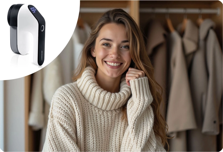 Ostre stalowe ostrza radzą sobie z kłaczkami, kuleczkami i odstającymi włóknami, pozostawiając tkaninę gładką i zadbaną.