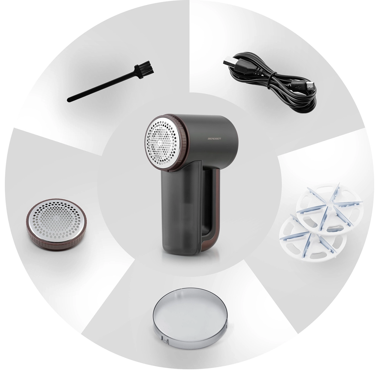 Golarka do ubrań, ochronna osłona, szczoteczka czyszcząca, kabel USB‑C