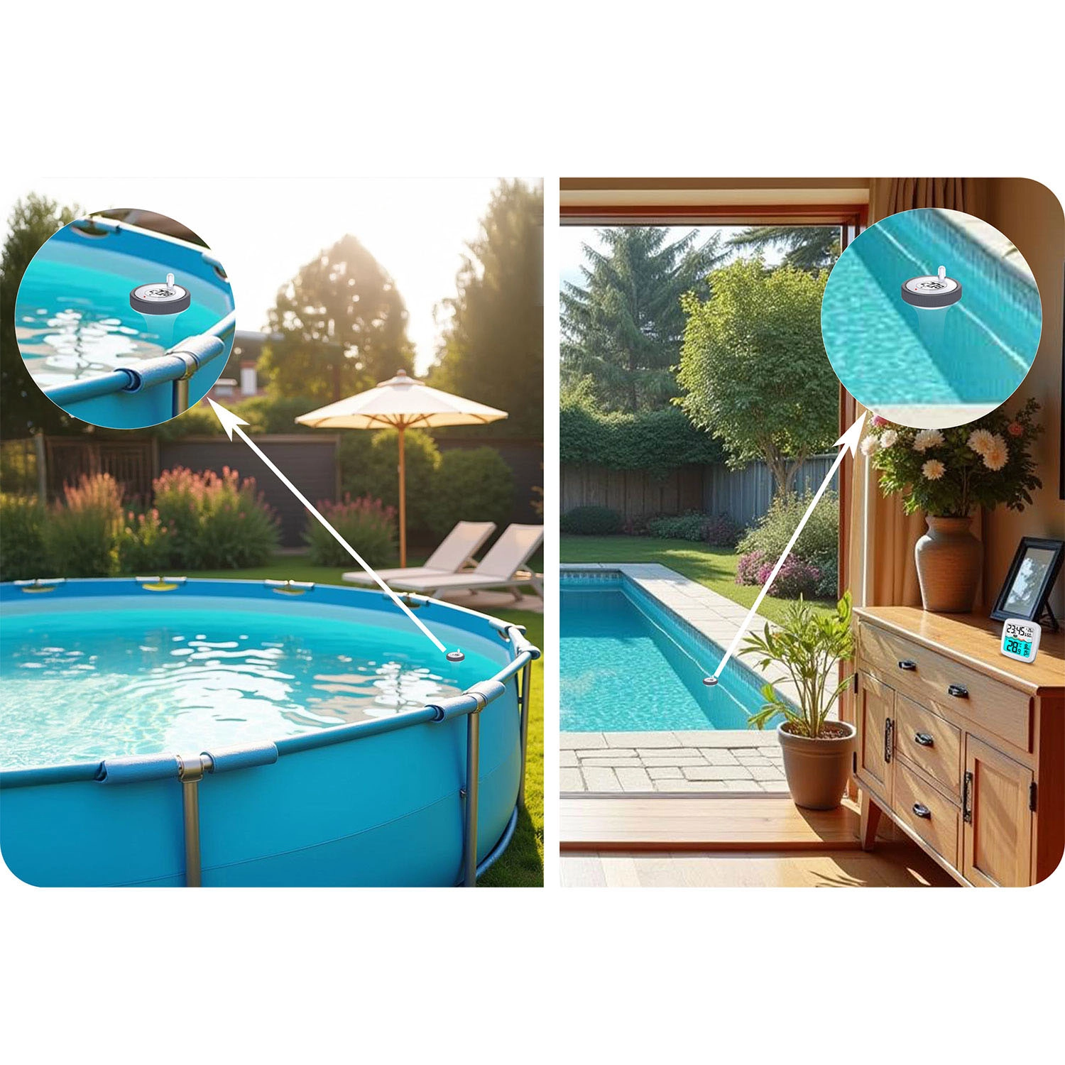 Pływający sensor precyzyjnie śledzi temperaturę wody i przesyła dane do jednostki wewnętrznej – idealny do przydomowych basenów i jacuzzi.