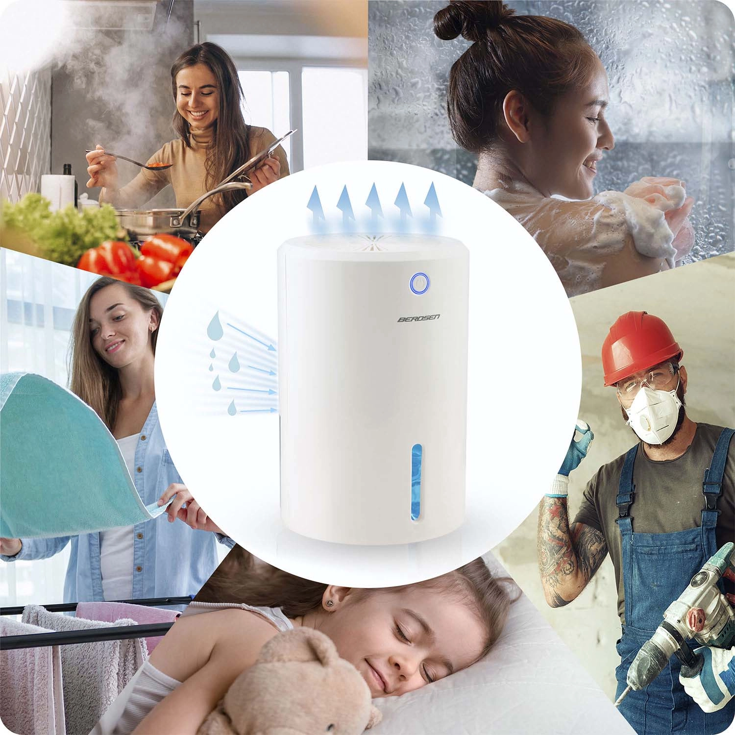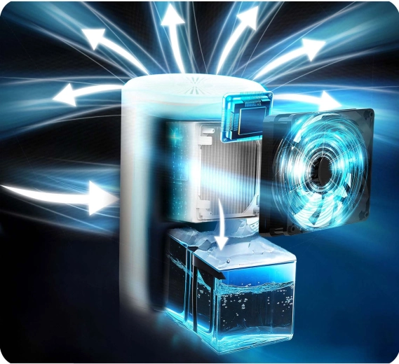 W idealnych warunkach (30 °C, 80% RH) osiąga wydajność do 280 ml/dzień, pomagając chronić ściany i meble przed pleśnią oraz nieprzyjemnymi zapachami, a także poprawiając jakość powietrza dla alergików. Duży wyjmowany zbiornik o pojemności 800 ml z wskaźnikiem poziomu ułatwia konserwację i podnosi komfort użytkowania.
