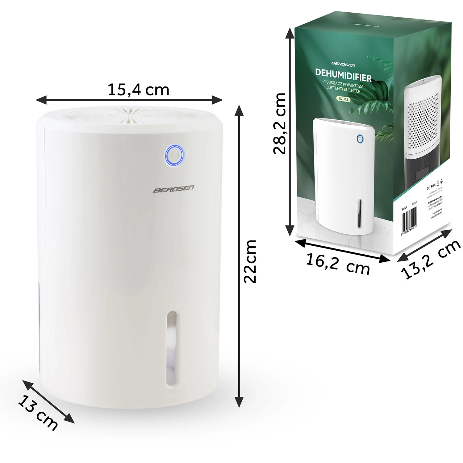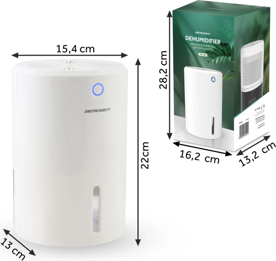 Osuszacz Berdsen BD-526 to niezawodne rozwiązanie dla domów, w których gromadzi się nadmierna wilgoć. Termoelektryczna technologia Peltiera zapewnia cichą i oszczędną pracę bez kompresora, dlatego idealnie sprawdzi się w sypialniach, łazienkach, garderobach i pralniach. Elegancki design ze stonowanym podświetleniem LED doskonale wpasuje się w każdy wystrój.