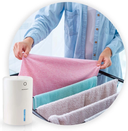 Skraca czas schnięcia ubrań i zapobiega powstawaniu stęchłego zapachu w pralni i łazience. Świetny tam, gdzie brakuje suszarni.
