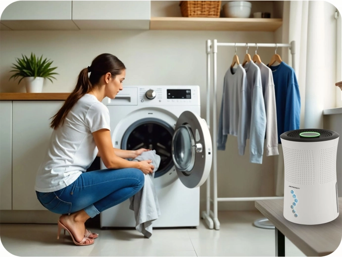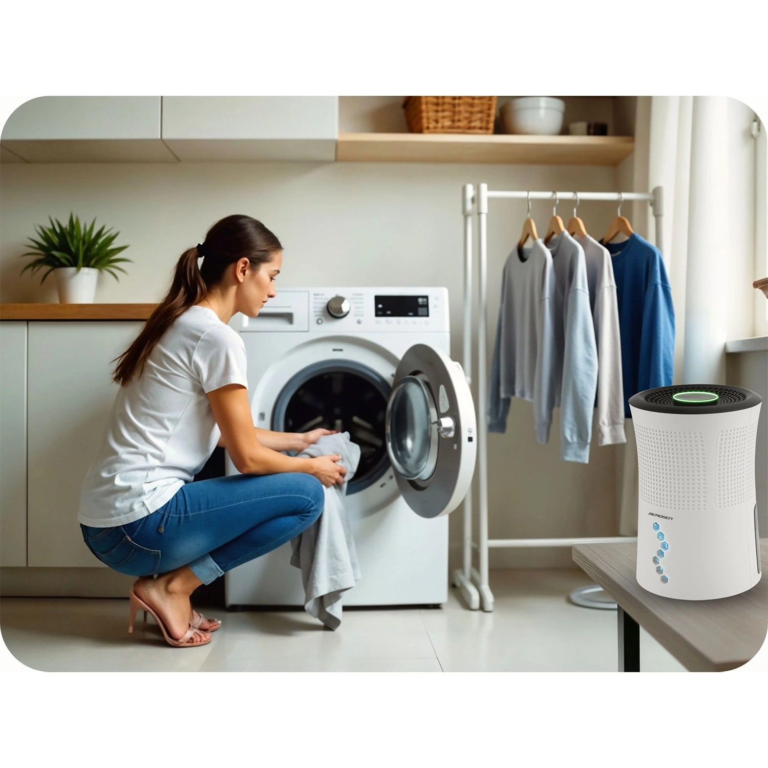 Osuszacz ogranicza rozwój pleśni, bakterii i roztoczy, poprawia jakość powietrza oraz pomaga zapobiegać alergiom i nieprzyjemnym zapachom w domu.