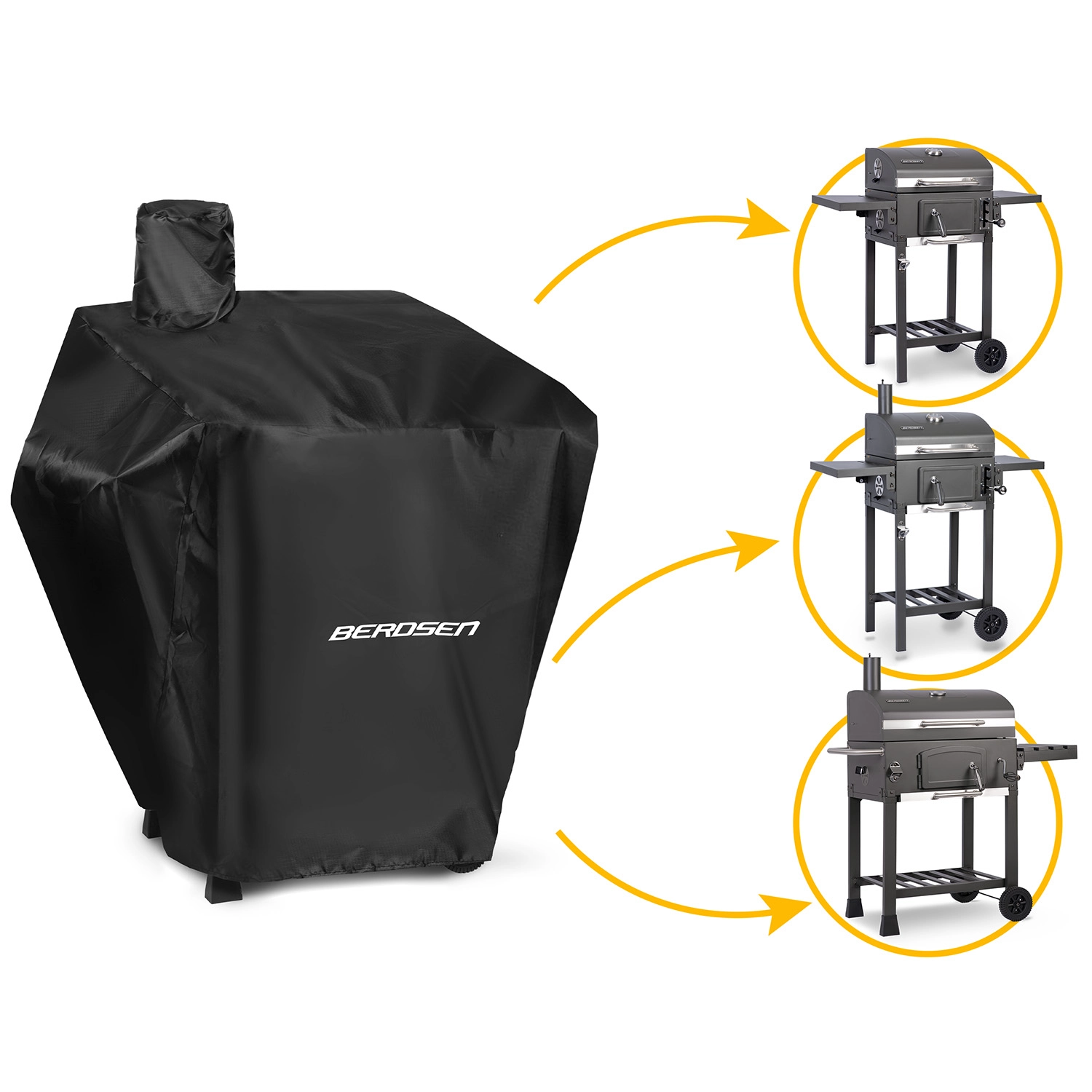 Praktyczny i wytrzymały pokrowiec na grill BERDSEN BBQChef chroni Twój ogrodowy grill przed niekorzystną pogodą i zabrudzeniami. Wykonany z mocnego materiału 210D OXFORD z powłoką poliuretanową 110 g, jest w 100% wodoodporny, wyposażony w ochronę UV i łatwy w utrzymaniu. Dzięki niskiej wadze łatwo się zakłada i zdejmuje oraz pomaga wydłużyć żywotność grilla.