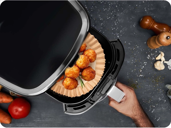 Ułatw sobie przygotowywanie potraw w frytkownicy beztłuszczowej dzięki jednorazowym wkładkom z papieru do pieczenia Berdsen. Minimalizują przypalanie i tłustość, więc po gotowaniu wystarczy wyrzucić wkładkę, a kosz pozostaje wyraźnie czystszy. Idealne do codziennego użytku i zdrowszego pieczenia bez zbędnego oleju.