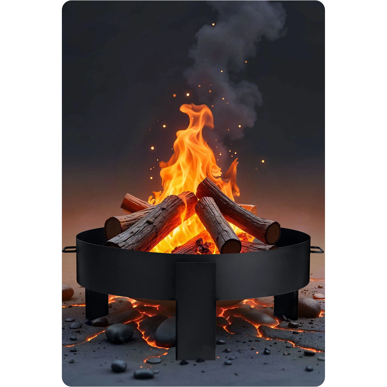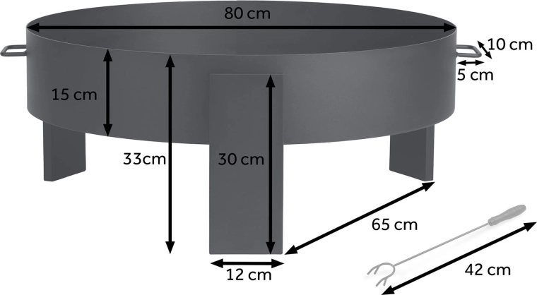 Mastywna konstrukcja stalowa z blachy 2 mm stoi pewnie na trzech nogach, zapewniając stabilność i bezpieczeństwo. Boczne uchwyty ułatwiają przenoszenie, a w zestawie znajduje się pogrzebacz z rączką do wygodnej manipulacji polanami. Minimalistyczny, uniwersalny design pasuje zarówno do nowoczesnych, jak i tradycyjnych ogrodów i łatwo wkomponuje się w każdy styl przestrzeni zewnętrznej.
