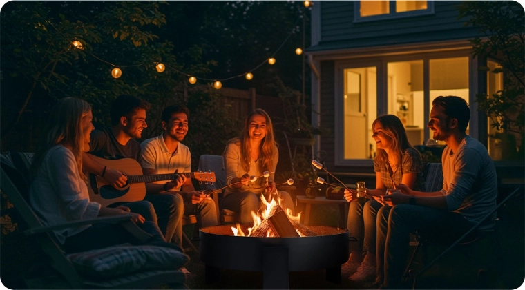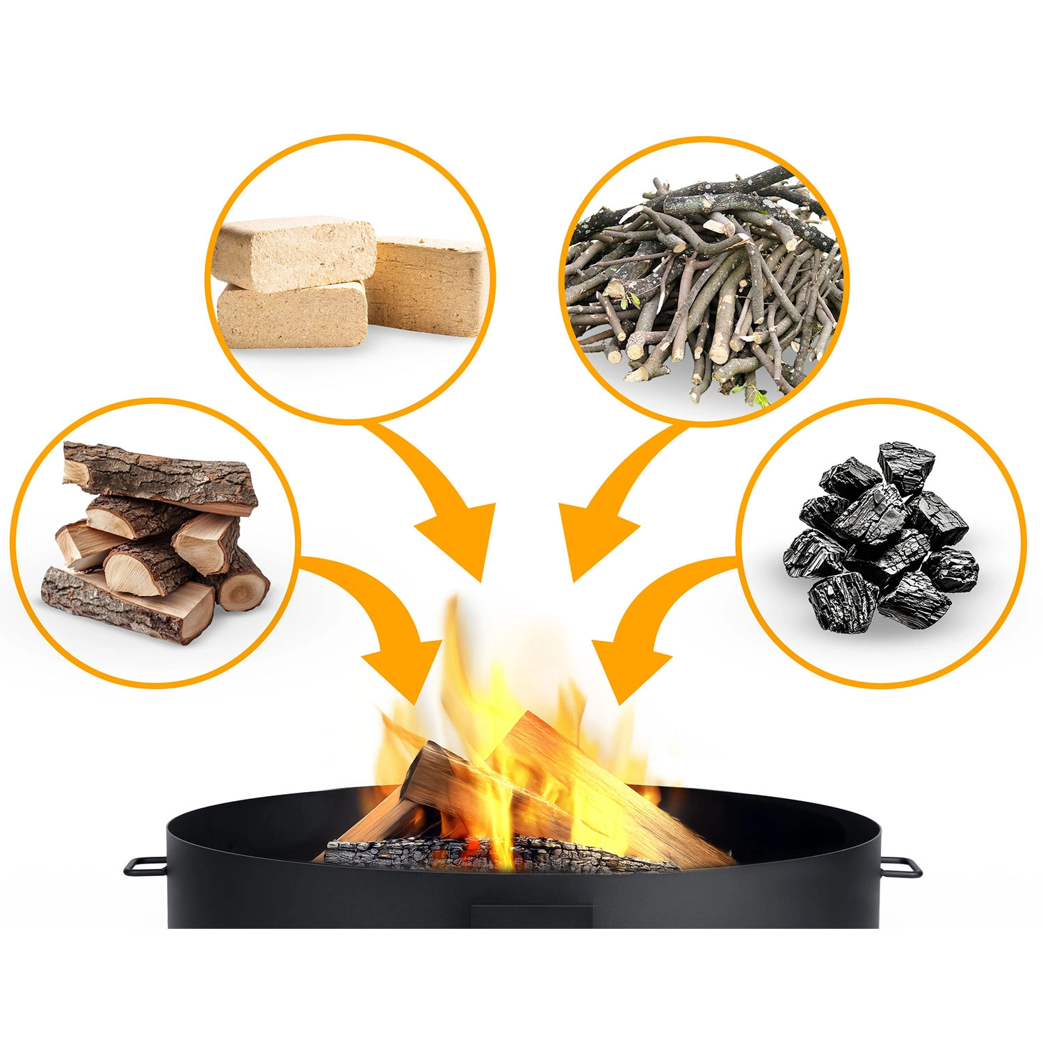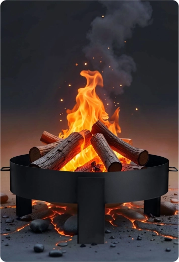 Pal drewnem opałowym, brykietami drzewnymi, gałęziami lub węglem drzewnym. Boczne uchwyty ułatwiają przenoszenie, a w zestawie znajduje się praktyczny pogrzebacz do bezpiecznej obsługi.