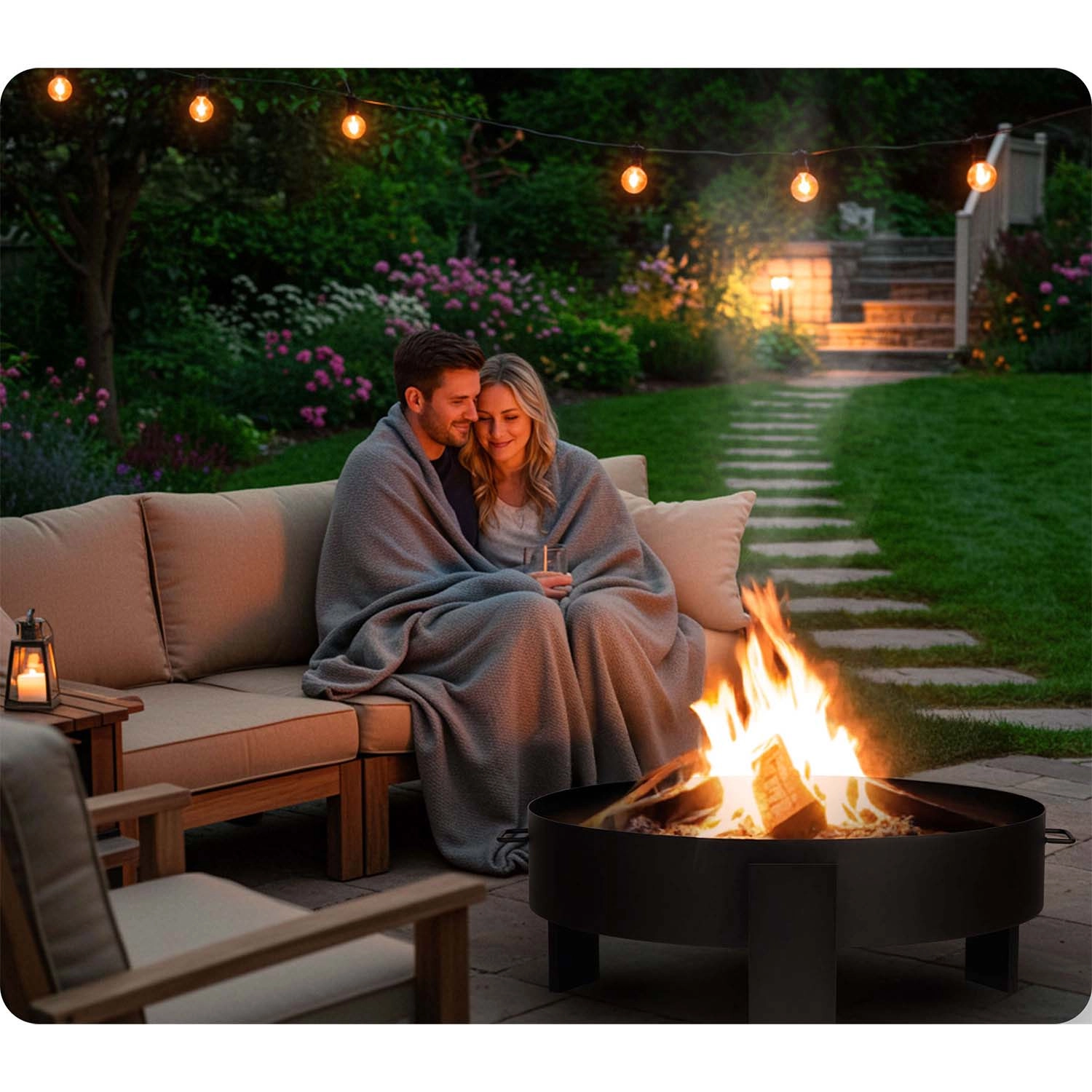 Ognisko Berdsen zamieni Twój taras w przytulne miejsce do spotkań z rodziną i przyjaciółmi. Szeroka, głęboka misa zapewnia dużo miejsca na drewno, brykiety, gałęzie i węgiel drzewny, a przemyślane otwory wentylacyjne wspierają szybkie rozpalenie oraz stabilne, równomierne płomienie. Dzięki malowaniu proszkowemu z ochroną antykorozyjną powierzchnia jest odporna na korozję, zarysowania i warunki pogodowe – idealna do całorocznego użytkowania.