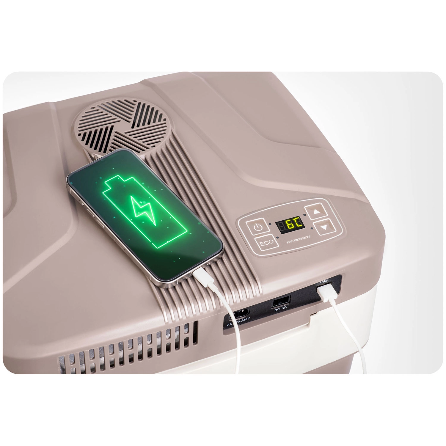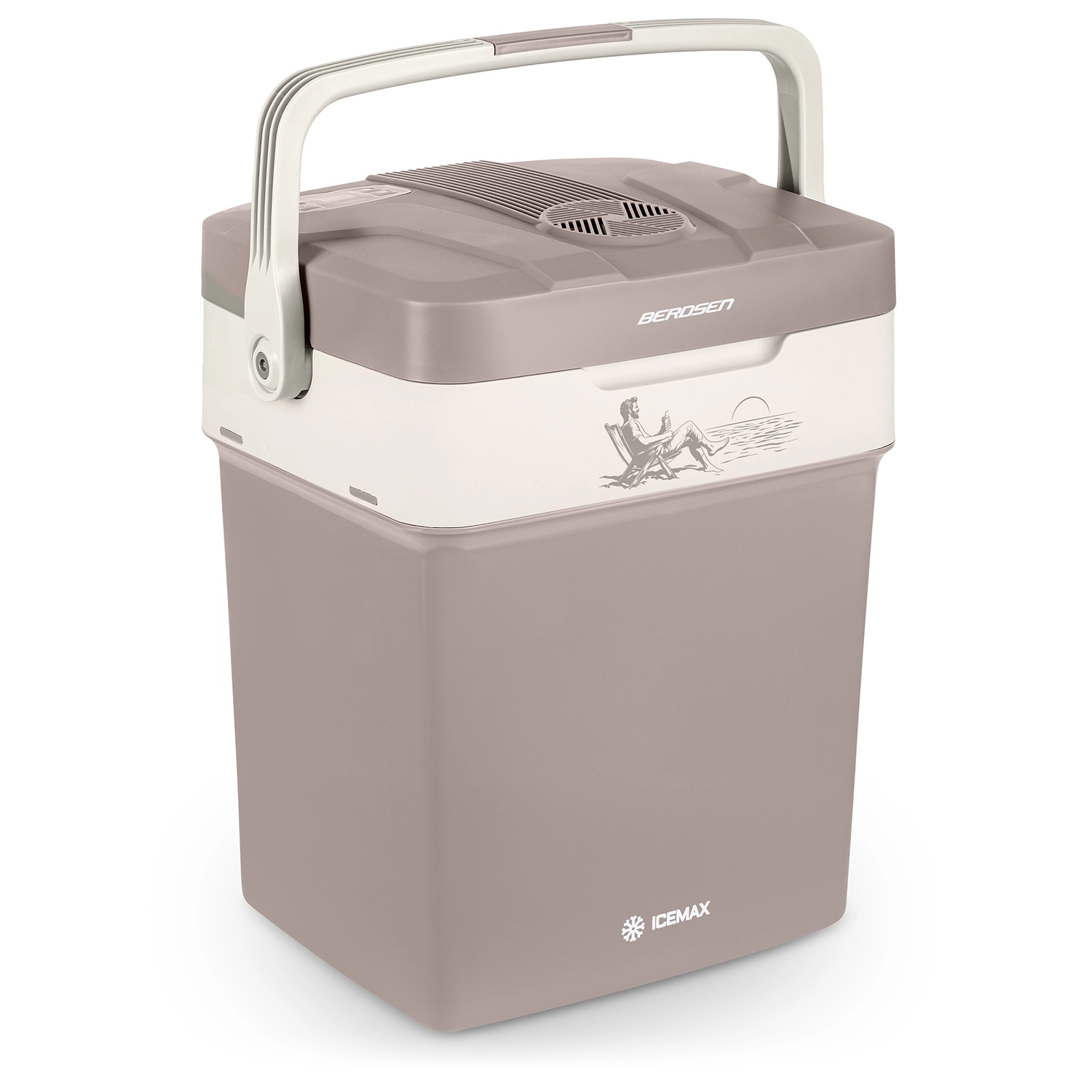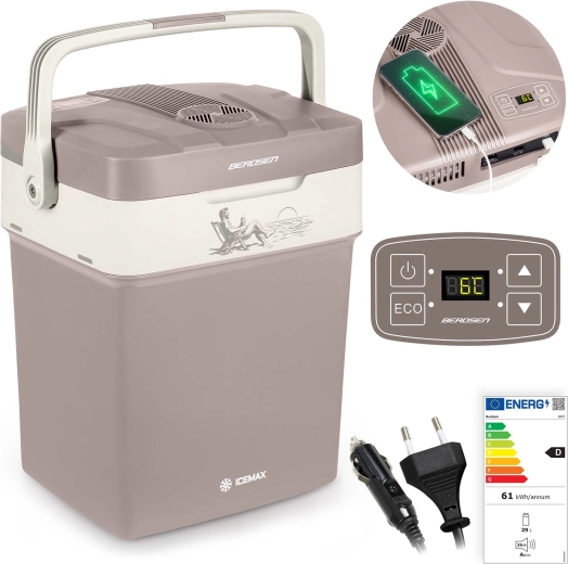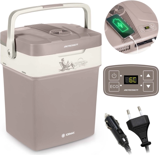Ciesz się wycieczkami, kempingiem i długimi trasami z kompaktową elektryczną lodówką samochodową BERDSEN Icemax o pojemności 29 l. Oferuje tryb ECO dla oszczędzania energii, aktywne chłodzenie do 18 °C poniżej temperatury otoczenia, możliwość podgrzewania do 65 °C, elektroniczny wyświetlacz z ustawieniem temperatury oraz podwójne zasilanie 12 V/230 V. Dzięki cichej pracy, składanemu uchwytowi i blokadzie pokrywy jest idealna do auta, na plażę i na piknik.