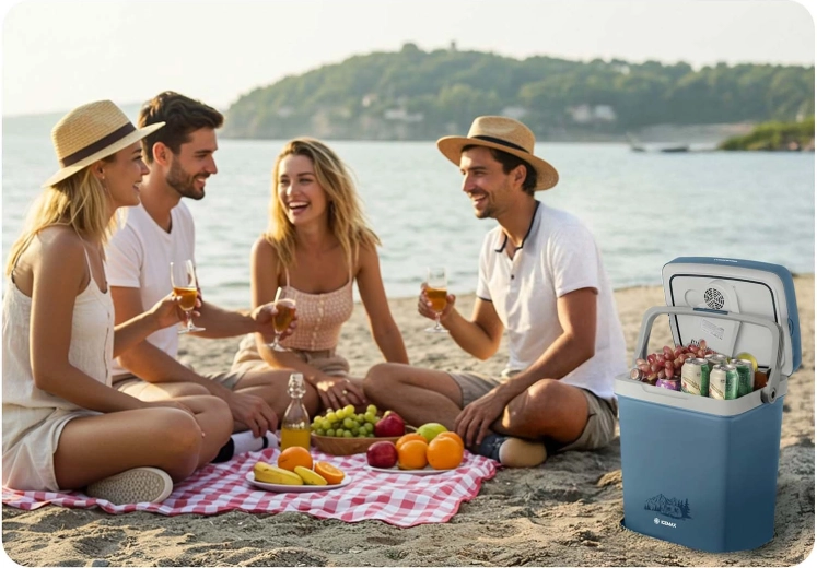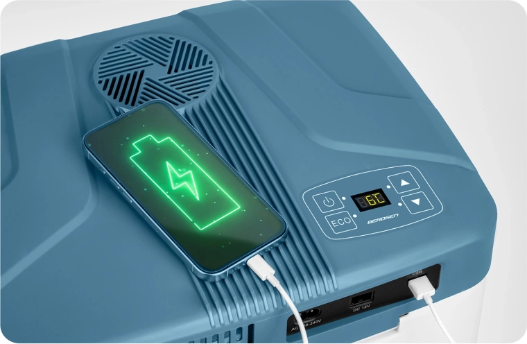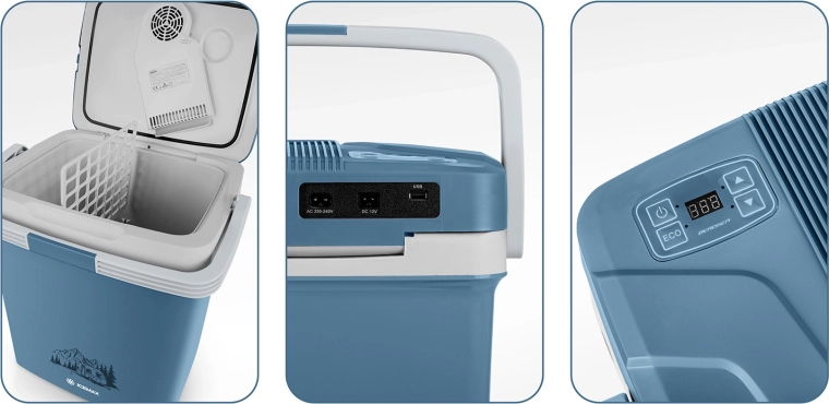 Lekka i kompaktowa lodówka samochodowa o pojemności 26 litrów z cyfrową regulacją temperatury, dwoma trybami ECO/Normal oraz funkcją chłodzenia do 18 °C poniżej temperatury otoczenia. Dzięki zasilaniu 12 V i 230 V, cichej pracy oraz wyjściu USB jest idealna w podróży autem, na plażę i na kemping.