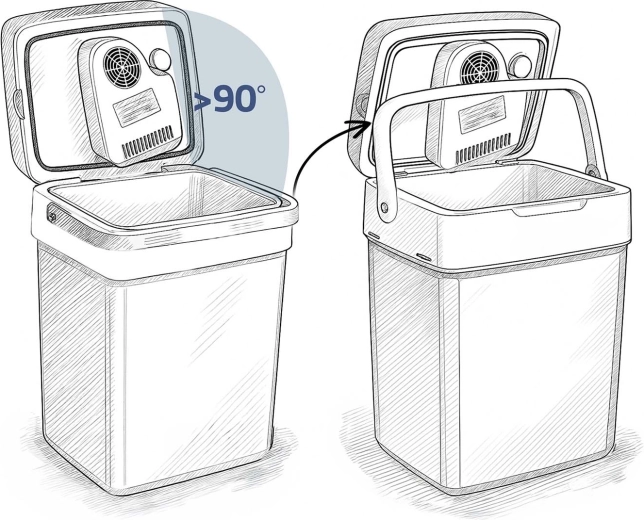 Dzięki zasilaniu 12 V (samochód) i 230 V (sieć) urządzenie jest idealne do podróży, na pikniki i dłuższe wakacje. Pokrywa ma zabezpieczenie blokujące przy pionowym ustawieniu rączki, a rączkę można wykorzystać jako podporę pokrywy podczas napełniania. Bardzo cicha praca w trybie ECO (zaledwie 26 dB) gwarantuje niezakłócony odpoczynek.