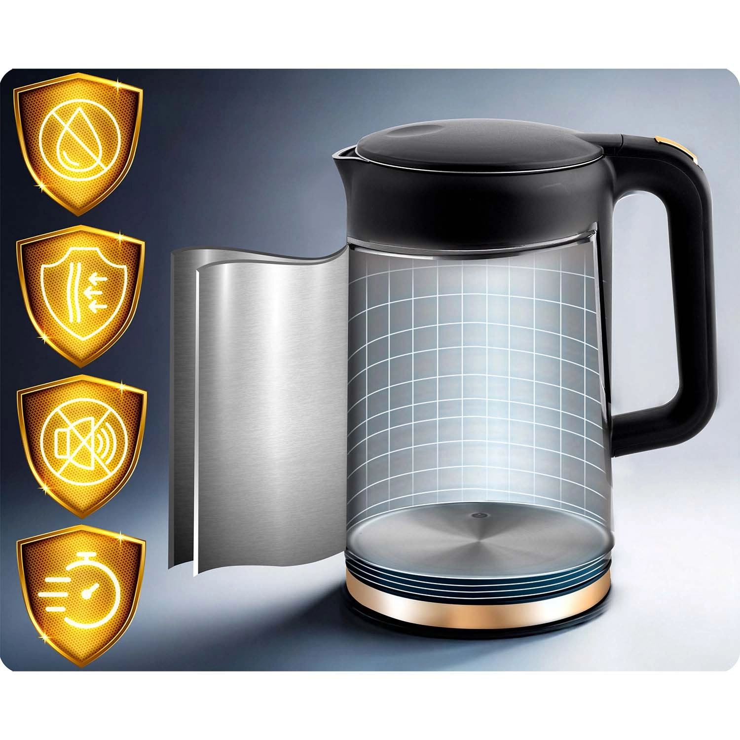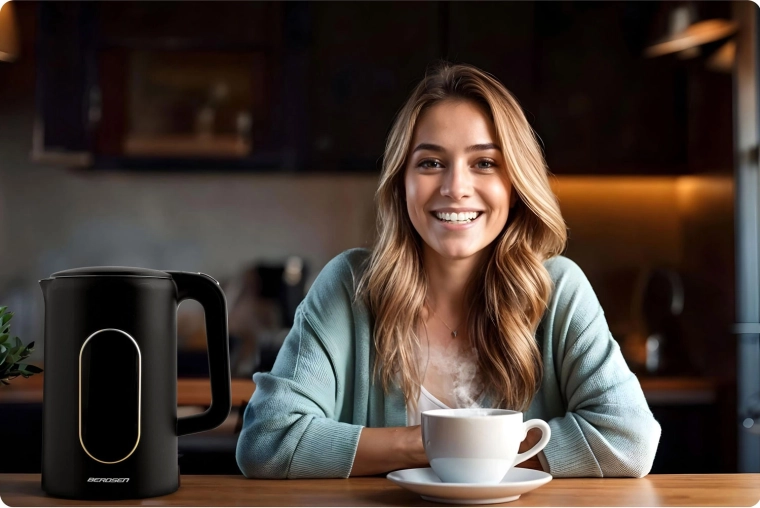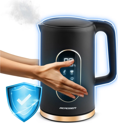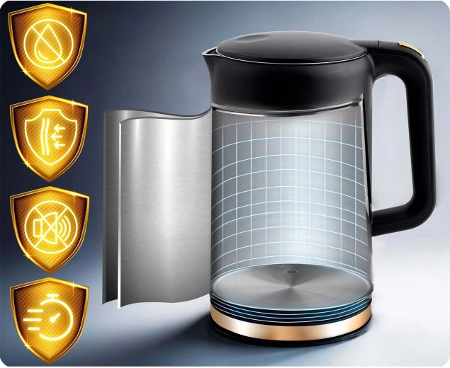 Bezpieczeństwo i komfort zapewnia dwuwarstwowa konstrukcja CoolTouch™ (stal nierdzewna + wysokiej jakości tworzywo), która z zewnątrz się nie przegrzewa, oraz niezawodne automatyczne wyłączanie z ochroną przed pracą na sucho. Nierdzewne wnętrze SUS 304 jest trwałe, higieniczne i bez BPA – dla czystszej wody i dłuższej żywotności urządzenia.