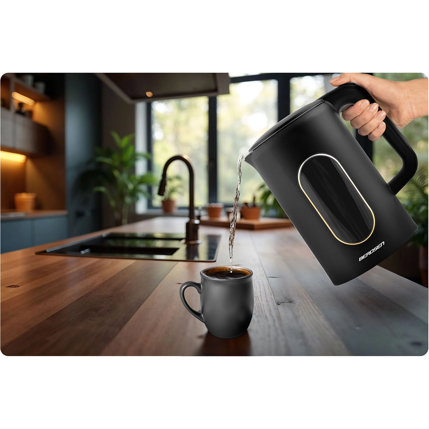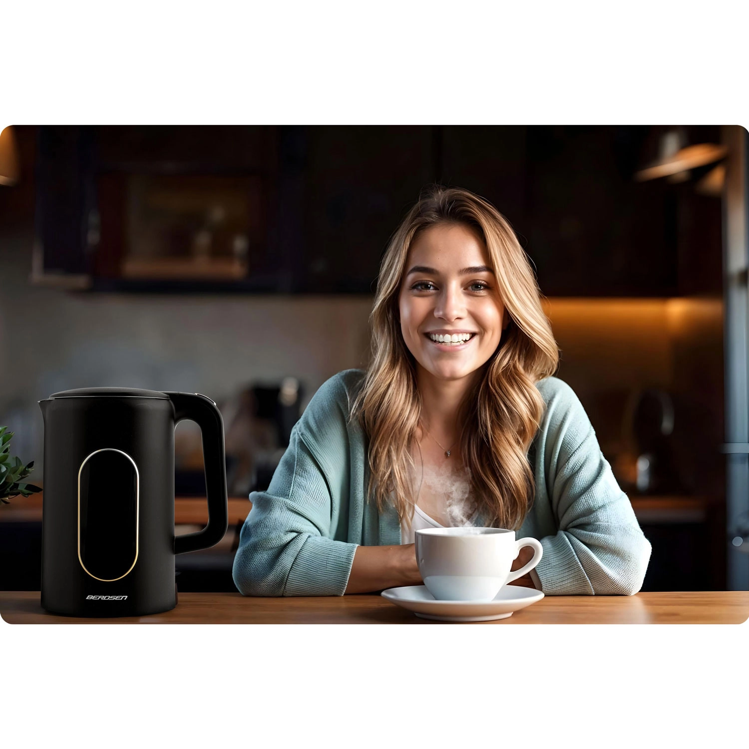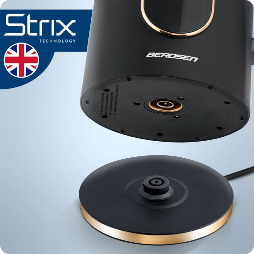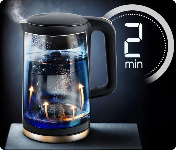 Wydajny system grzewczy 1850–2200 W zapewnia szybkie i ciche zagotowanie w 2–5 minut. Praktyczna wylewka z niekapącym dzióbkiem, obrotowa podstawa 360° oraz przyciskowe otwieranie pokrywy sprawiają, że codzienne przygotowanie napojów to czysta przyjemność.