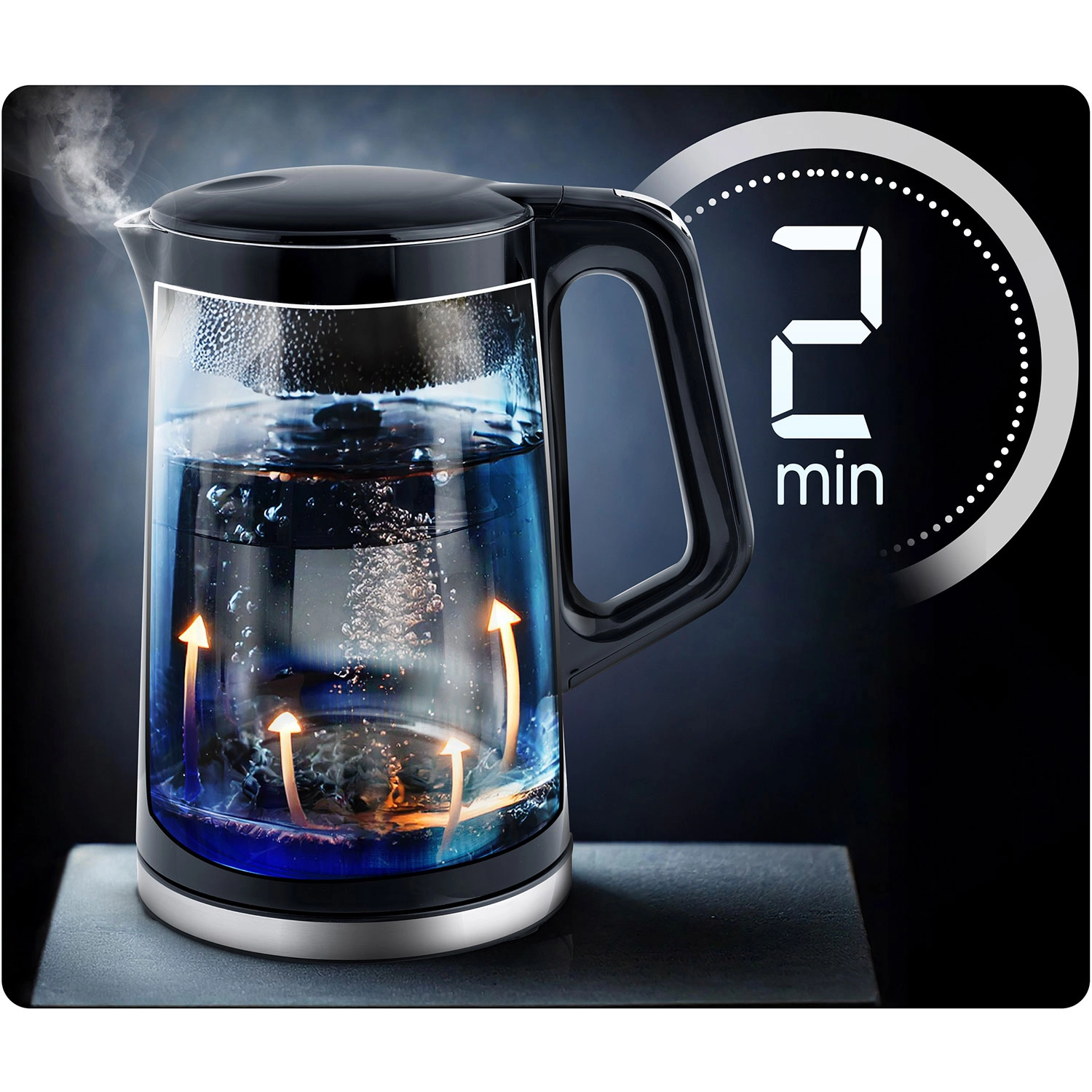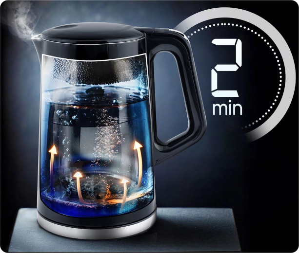 Moc 1850–2200 W zapewnia szybkie, ciche grzanie, a profilowany, niekapiący dzióbek umożliwia precyzyjne i czyste serwowanie.