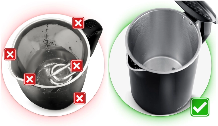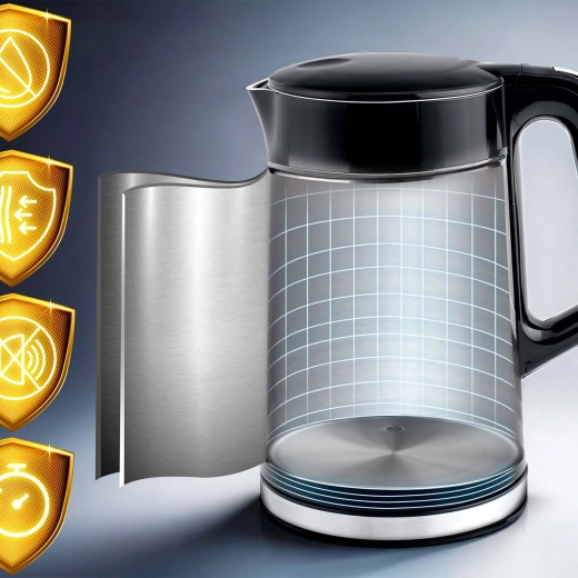 Bezpieczeństwo i higiena są na pierwszym miejscu: dwuwarstwowa izolacja CoolTouch utrzymuje obudowę chłodną, stalowe wnętrze SUS 304 (BPA free) chroni smak i jakość wody, a konstrukcja bez zbędnych zakamarków łatwo się czyści. Oczywiście jest automatyczne wyłączanie i ochrona przed gotowaniem na sucho, obrotowa podstawa 360° oraz wygodne otwieranie pokrywy przyciskiem.