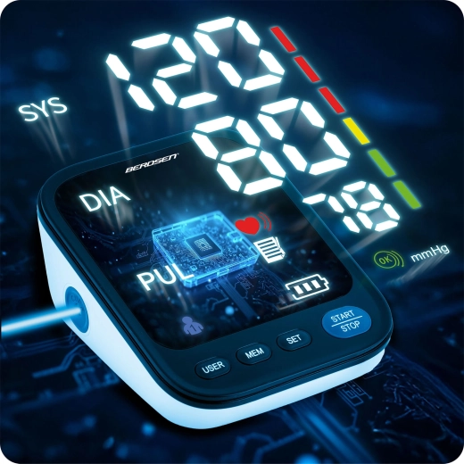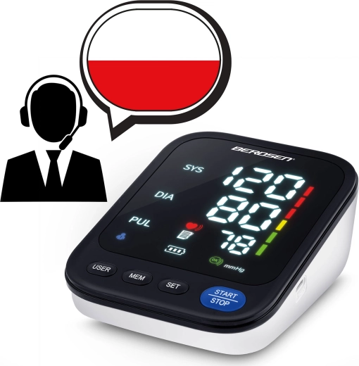 Ciśnieniomierz BERDSEN BD-122 jest idealny do codziennego domowego pomiaru ciśnienia krwi dla całej rodziny. Wskazówki głosowe w języku polskim prowadzą użytkownika krok po kroku i odczytują uzyskane wartości, co docenią szczególnie seniorzy i osoby z osłabionym wzrokiem. Przejrzysty wyświetlacz LED pokazuje sys, dia i puls, a wskaźnik prawidłowego założenia mankietu oraz skala klasyfikacji ciśnienia pomagają uzyskać dokładne i zrozumiałe wyniki.