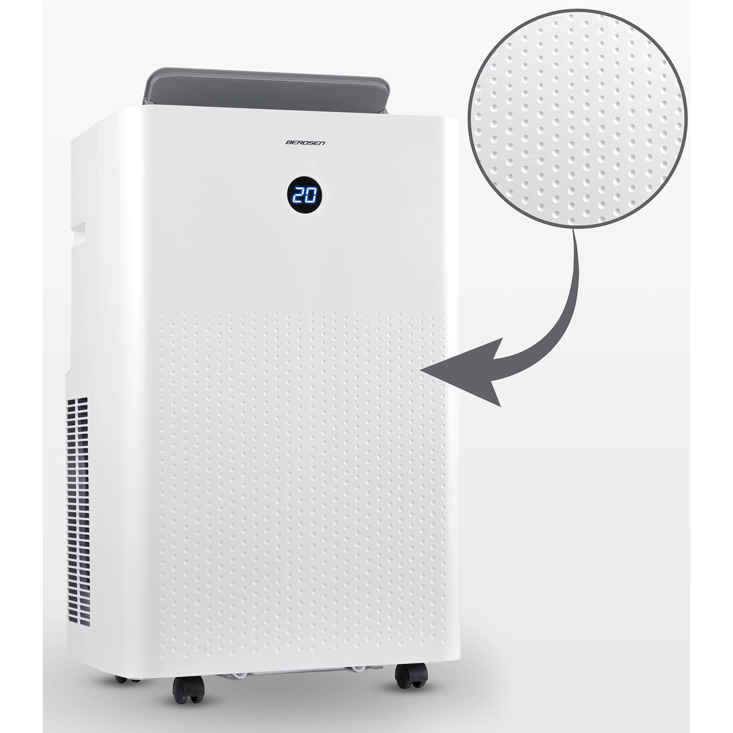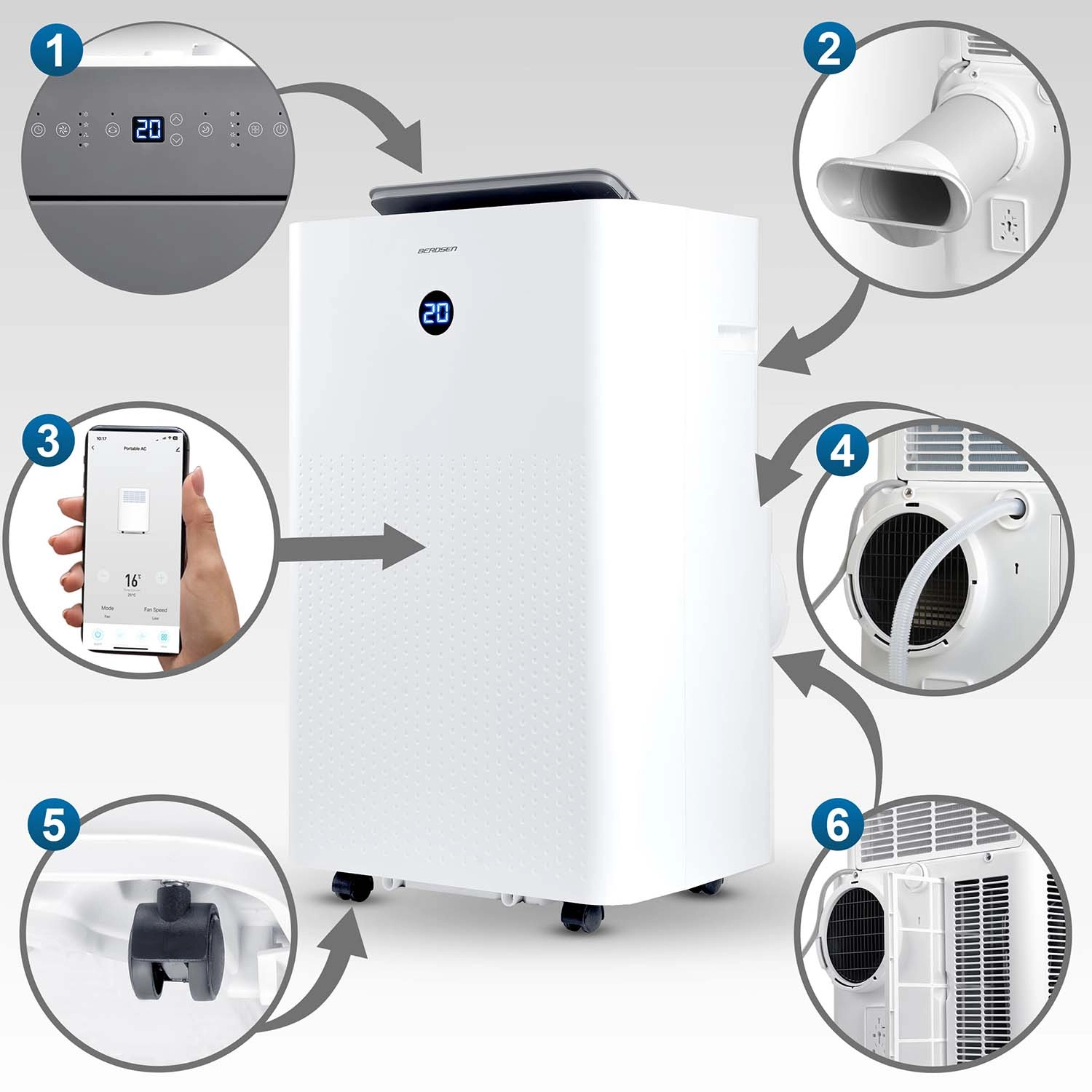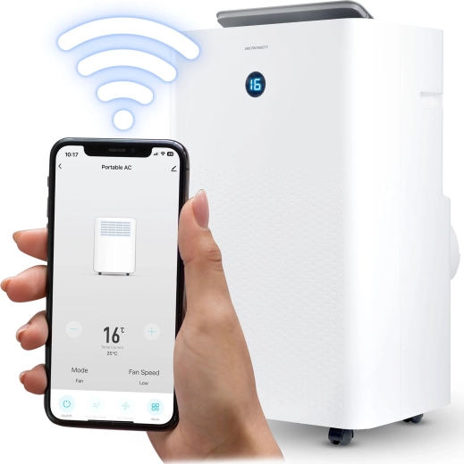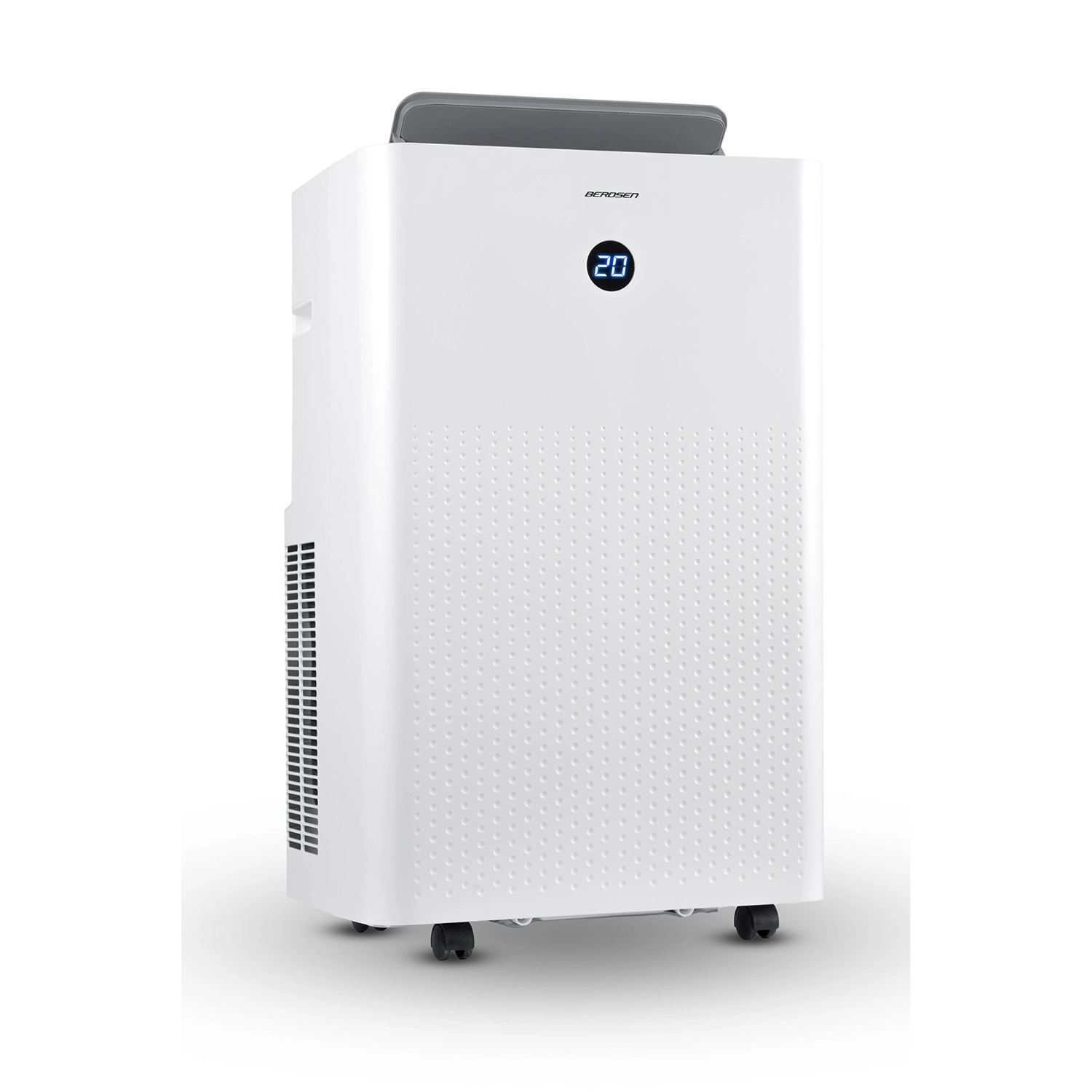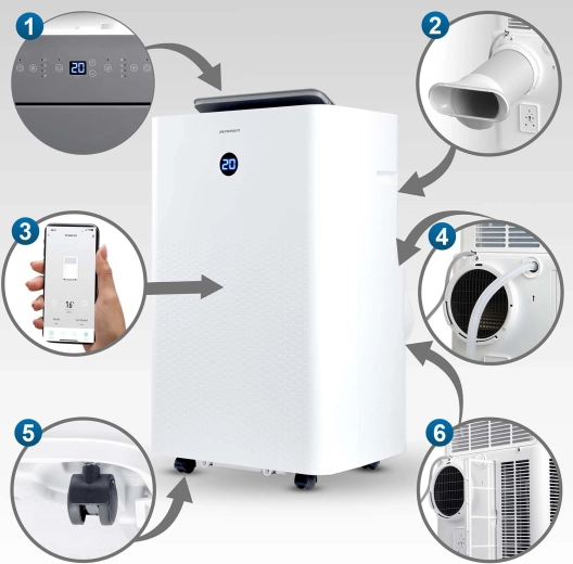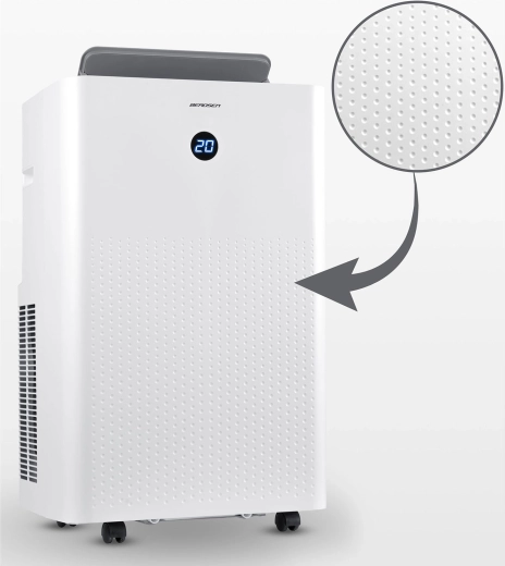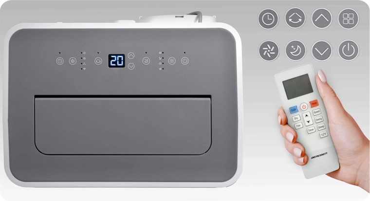 BERDSEN BD-584 to dopracowany przenośny klimatyzator o wydajności 14 000 BTU (4,1 kW chłodzenia) i funkcji ogrzewania 3,22 kW, który zapewnia szybką regulację temperatury i wilgotności. Samo‑odparowywanie kondensatu zwiększa efektywność i ogranicza konieczność wylewania wody, a cicha praca i tryb nocny nie zakłócają snu ani koncentracji. Sterowanie jest intuicyjne dzięki panelowi dotykowemu, pilotowi oraz aplikacji mobilnej Tuya Smart.