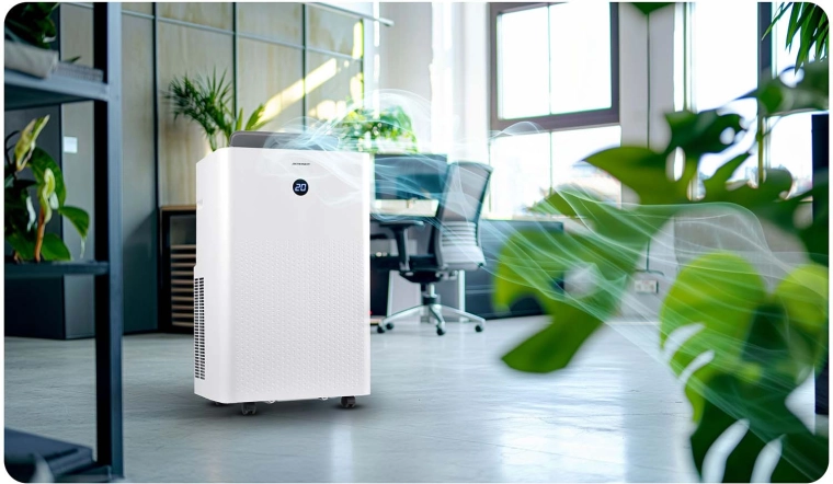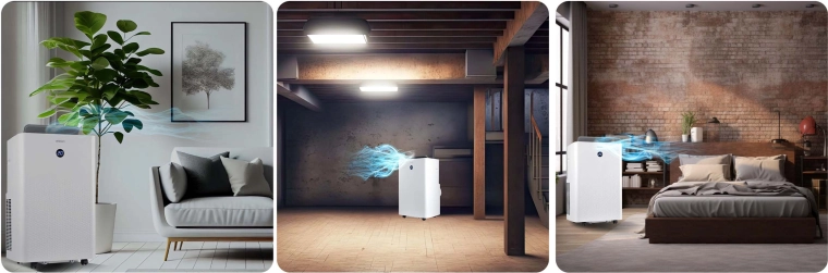 System samo‑odparowywania i higrostat z wyświetlaczem LED skutecznie obniżają wilgotność, zapobiegają pleśni i poprawiają jakość powietrza także w trybie nocnym.