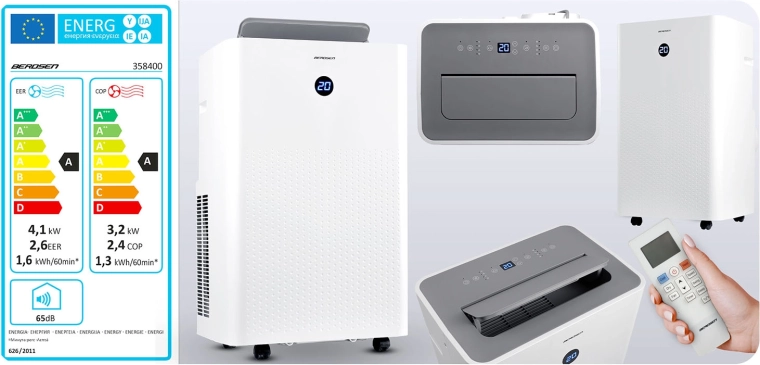 - Wysoka wydajność: 14 000 BTU chłodzenia, 11 000 BTU ogrzewania, przepływ powietrza 390 m³/h.