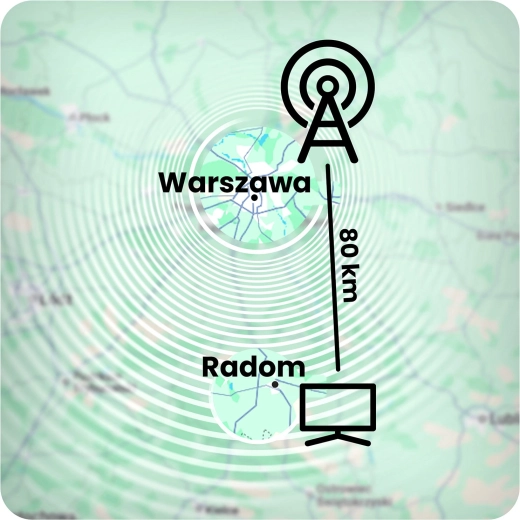 - Do 80 km (w zależności od warunków odbioru)
