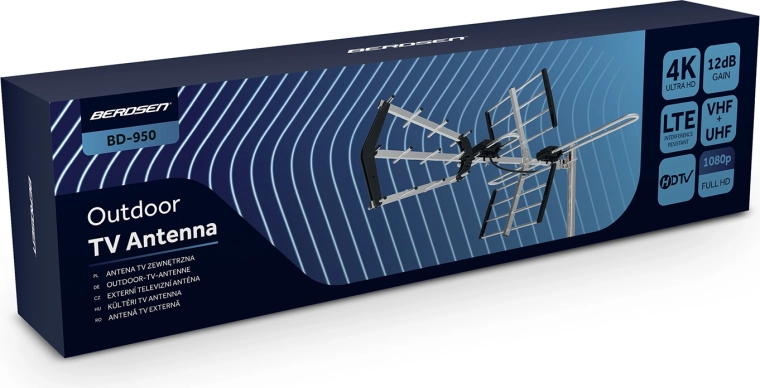 Ulepsz odbiór telewizji naziemnej dzięki zewnętrznej antenie kierunkowej BERDSEN – pasywnemu rozwiązaniu o zasięgu do 80 km, z obsługą VHF i UHF, kompatybilnością z DVB-T/T2 oraz czystym obrazem w Full HD i 4K Ultra HD. Dzięki zintegrowanemu filtrowi LTE minimalizuje zakłócenia z sieci komórkowych i zapewnia stabilny sygnał nawet w wymagających warunkach.