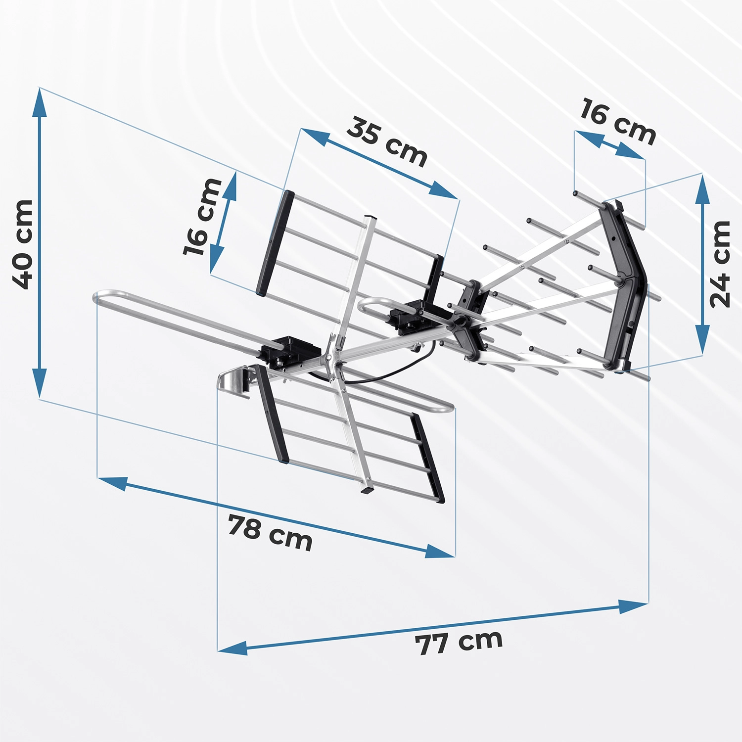 - Reflektory, dipol, direktory; odporna na warunki atmosferyczne