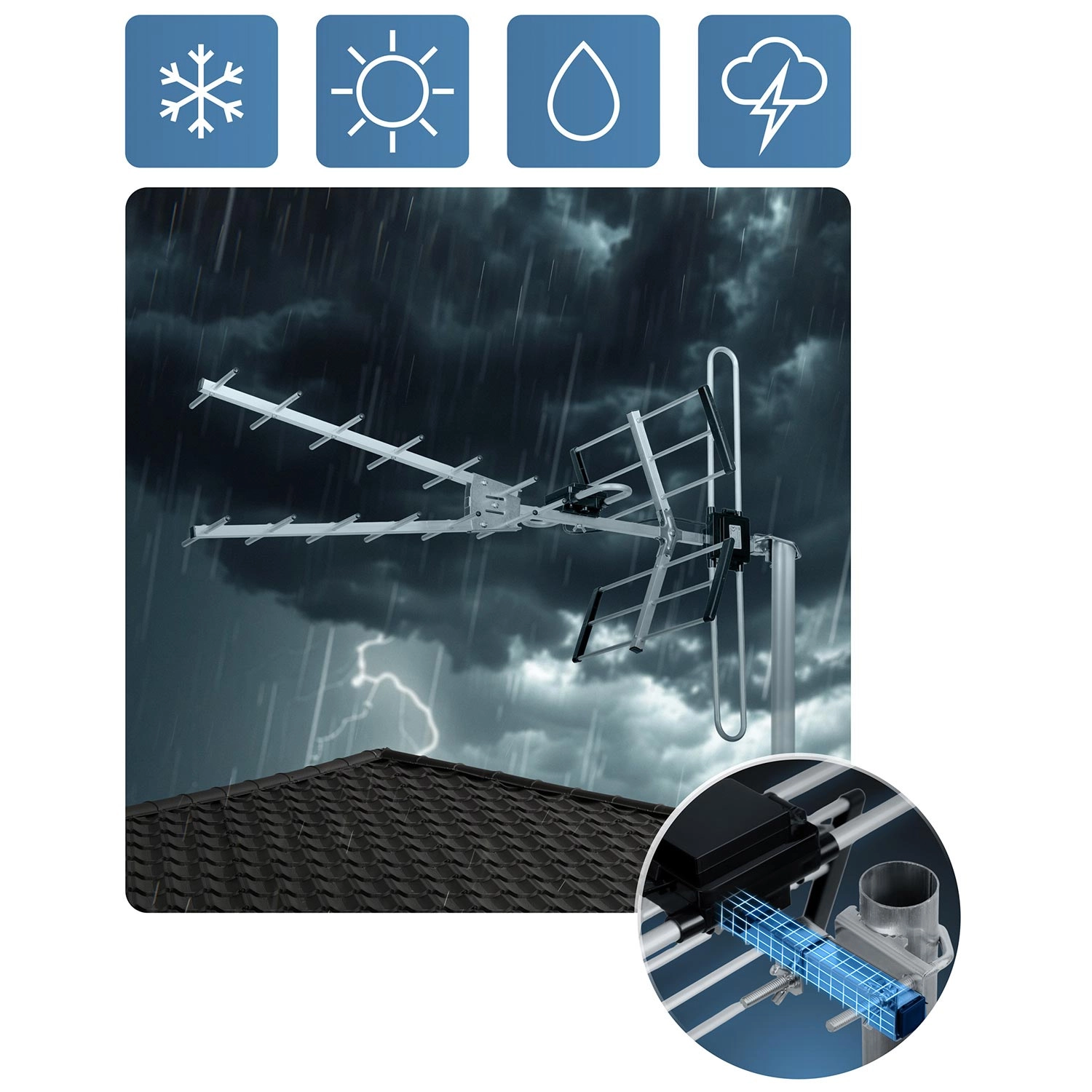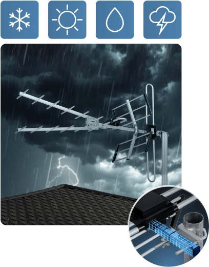 Trwałe materiały i solidne mocowanie zapewniają niezawodny odbiór przez cały rok – od słońca, przez deszcz, po śnieg i wiatr.