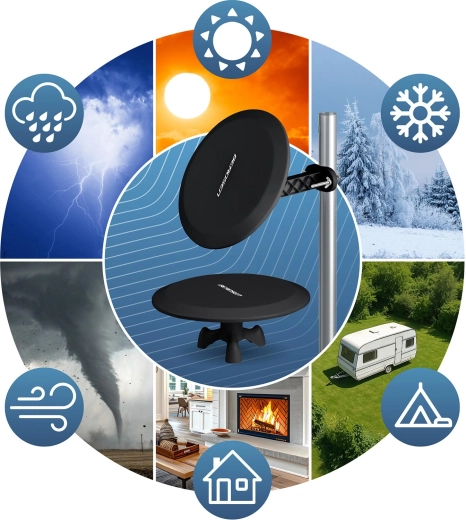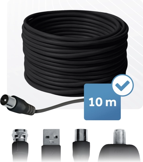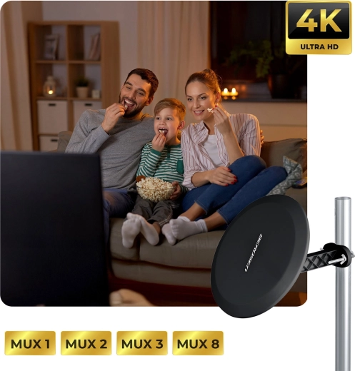 Wbudowany filtr LTE chroni odbiór przed zakłóceniami sieci 4G/5G, więc możesz cieszyć się czystym, ostrym obrazem nawet przy gorszej pogodzie. Antenę można zasilać bezpośrednio z telewizora przez USB, z zewnętrznego zasilacza z końcówką DC lub z tunera – instalacja zajmuje tylko kilka minut i nie wymaga specjalnych narzędzi.