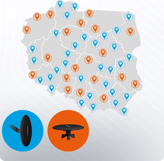- VHF + UHF, MUX 1–8 – pełne pokrycie stacji