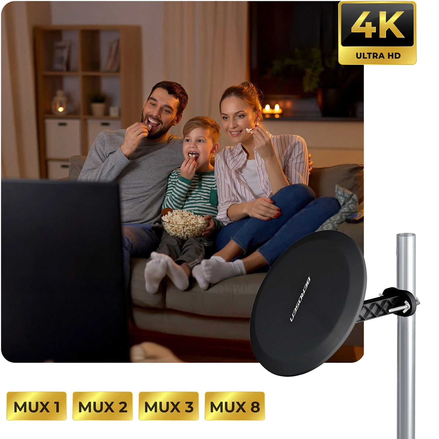 - Wzmocnienie 28 dB dla silnego i stabilnego sygnału bez pikselizacji