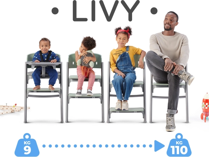 KINDERKRAFT LIVY to multifunkcyjne krzesełko 3w1 – sprawdzi się jako wysokie krzesełko do karmienia, samodzielne krzesło dla starszego dziecka oraz ergonomiczne krzesło dla nastolatków (a nawet dla rodziców). Rośnie razem z dzieckiem dzięki regulowanej głębokości siedziska (3 poziomy), wysokości (4 pozycje) i podnóżka. Szerokie siedzisko i profilowane oparcie wspierają prawidłową postawę ciała podczas jedzenia, zabawy i nauki.