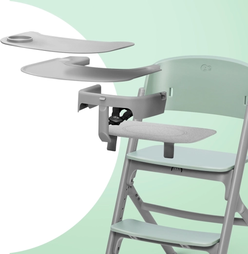 Bezpieczeństwo zapewniają pięciopunktowe pasy z regulacją długości oraz mocna, stabilna konstrukcja ze stali i aluminium z szerokim rozstawem nóg. Duży, praktyczny stolik z antypoślizgową silikonową tacą (wolną od BPA) można myć w zmywarce. Do krzesełka można podłączyć leżaczek CALMEE, aby stworzyć wysoki leżaczek i mieć maluszka zawsze na wysokości wzroku.