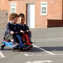Bez łańcuchów, baterii i pedałów. Dziecko rozpędza Didicar płynnym obracaniem kierownicy w lewo i w prawo – do przodu i do tyłu z pełną kontrolą.