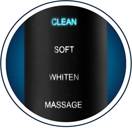 Tryby Clean, White, Soft i Massage obejmują codzienne czyszczenie, polerowanie dla bielszych zębów, delikatną pielęgnację zębów wrażliwych oraz łagodny masaż dziąseł.