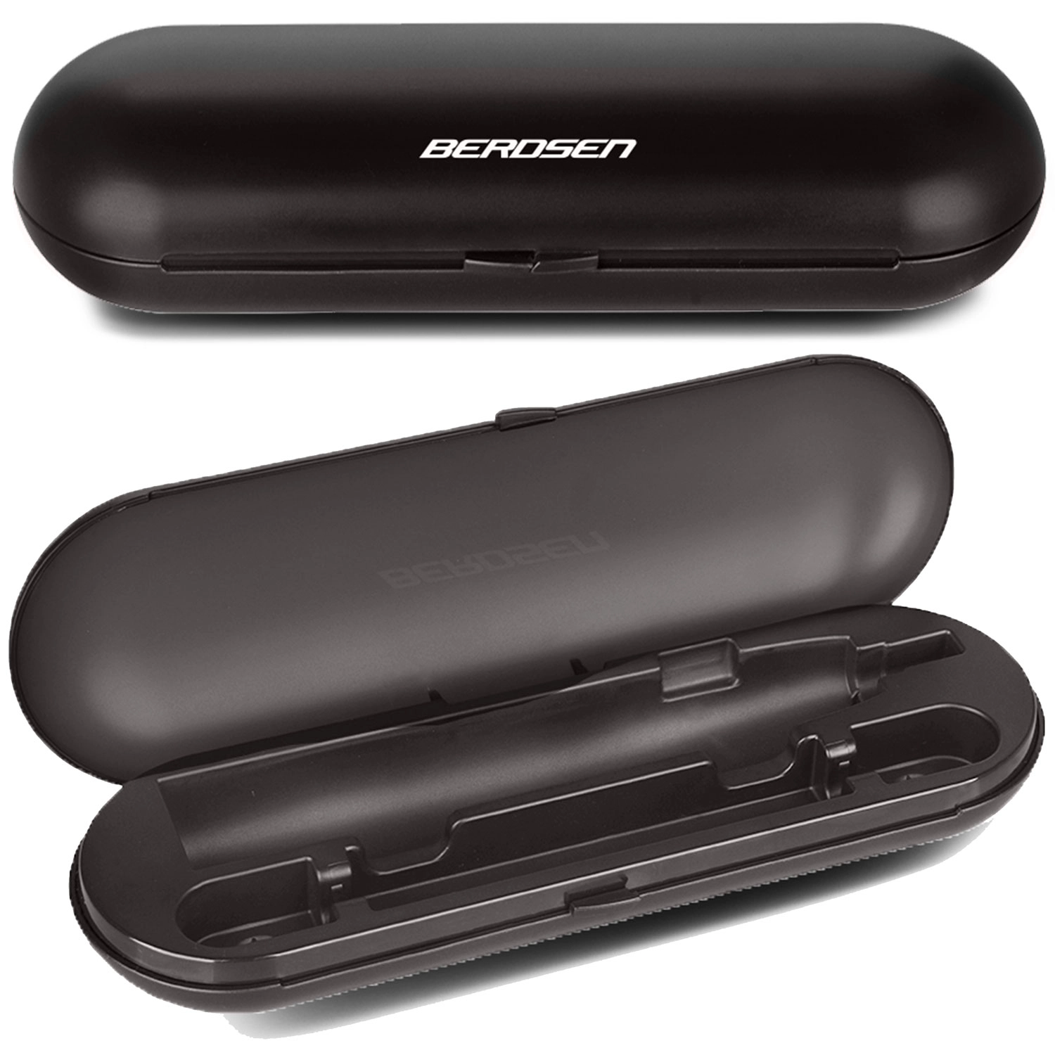 Wytrzymałe, twarde etui bezpiecznie mieści szczoteczkę i dwie główki. Utrzymuje wszystko w czystości i porządku w domu i w podróży.