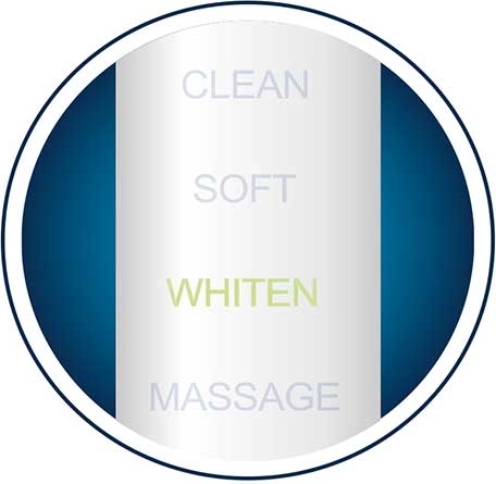 Czyszczenie, Wybielanie, Delikatny i Masaż: wybierz idealne ustawienie do codziennej higieny, dla wrażliwych zębów, polerowania szkliwa i stymulacji dziąseł.