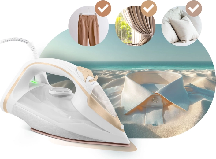 - Regulacja temperatury i pary dla bezpiecznego prasowania wszystkich materiałów