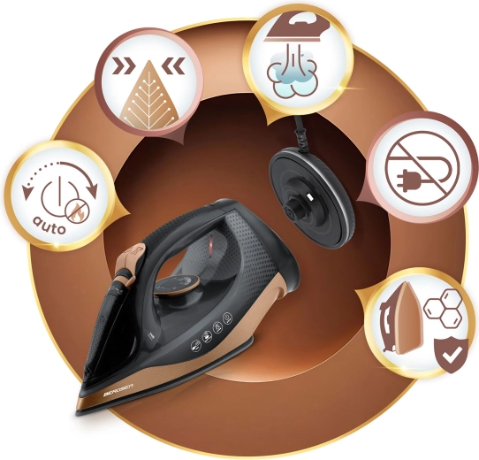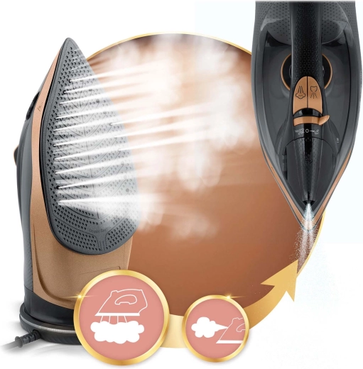 Gładkie prowadzenie, równomierne rozprowadzanie pary i łatwe prasowanie nawet w trudno dostępnych miejscach dzięki precyzyjnemu czubkowi.