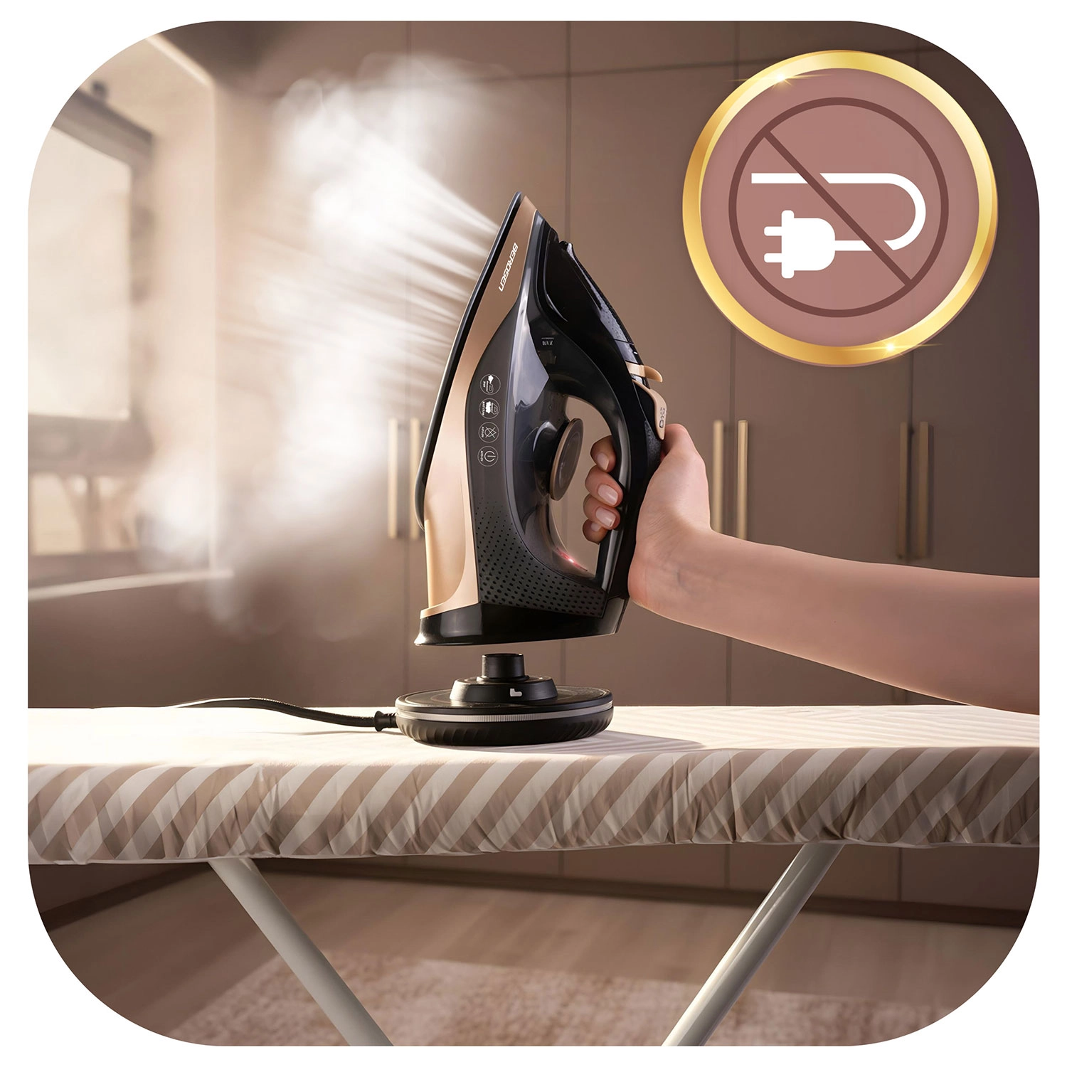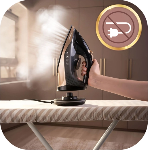 Używaj żelazka swobodnie bez kabla lub zablokuj stację i prasuj jak klasycznym modelem – zawsze stabilna temperatura i płynna praca.