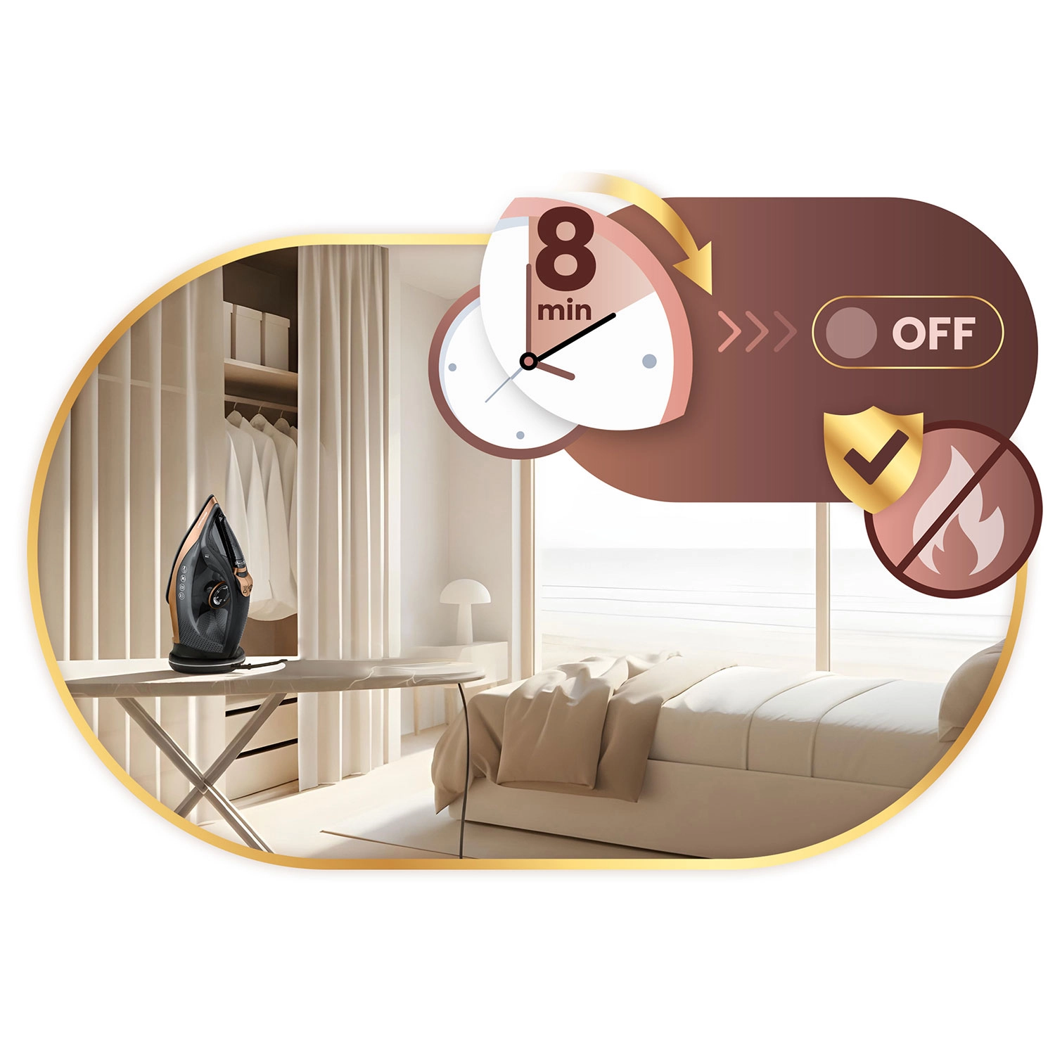 Funkcja Auto-Off (Smart&Safe) wyłącza żelazko po 8 minutach bezczynności. Self Clean ułatwia czyszczenie i wydłuża żywotność.