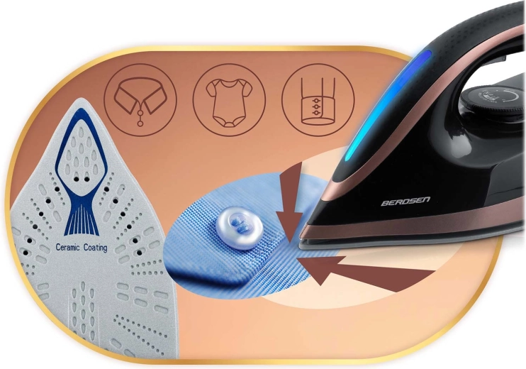 - Ceramiczna stopa odporna na zarysowania, precyzyjny czubek do kołnierzyków i mankietów